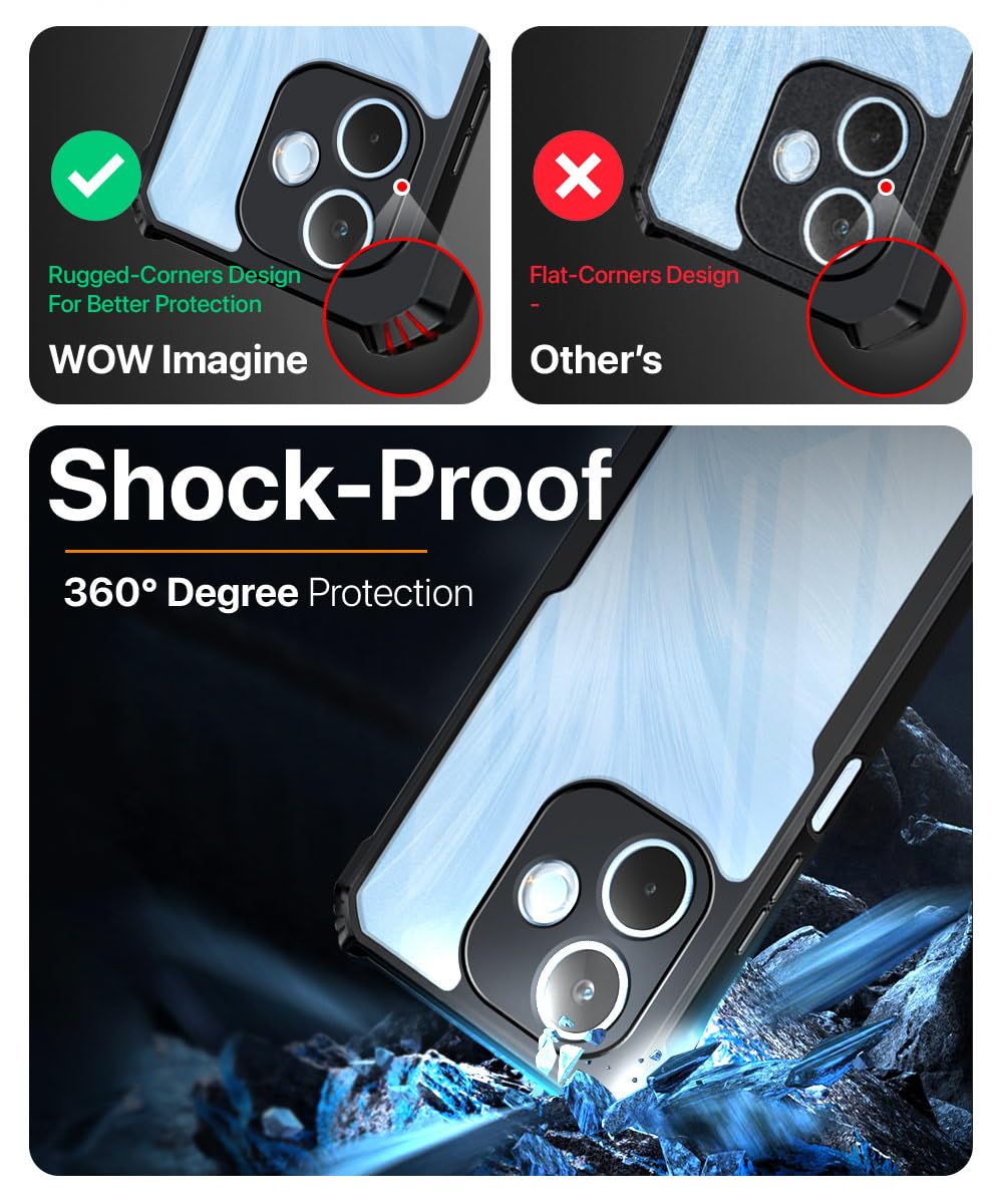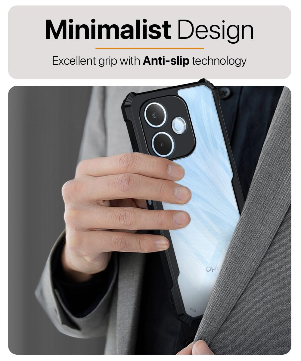 The Shock Proof Clear Protective Back Case for Oppo A5 Pro 5G – AirEDGE Technology | 360 Degree Camera Protection | Transparent Hybrid Back Case Mobile Cover – Black is designed with premium quality materials to provide superior protection, durability, and style for your smartphone. It offers a perfect balance between functionality and aesthetics, ensuring your device stays safe from scratches, impacts, and daily wear. Engineered with precision, it features accurate cutouts for ports, buttons, and cameras, making it highly convenient for everyday use. The slim and lightweight design ensures that your device retains its sleek profile without adding unnecessary bulk. Whether it is a nano film tempered glass, a hybrid back case, or a camera lens protector, each product is created with attention to detail to enhance the user experience and extend the life of your smartphone. The material used ensures long-lasting clarity, anti-scratch performance, and resistance against fingerprints and smudges. It is the ideal choice for users who want both style and substance in their smartphone accessories. This product from reflects innovation and craftsmanship, making it a reliable accessory that safeguards your investment while maintaining modern appeal.