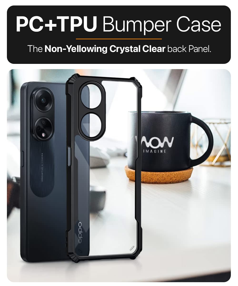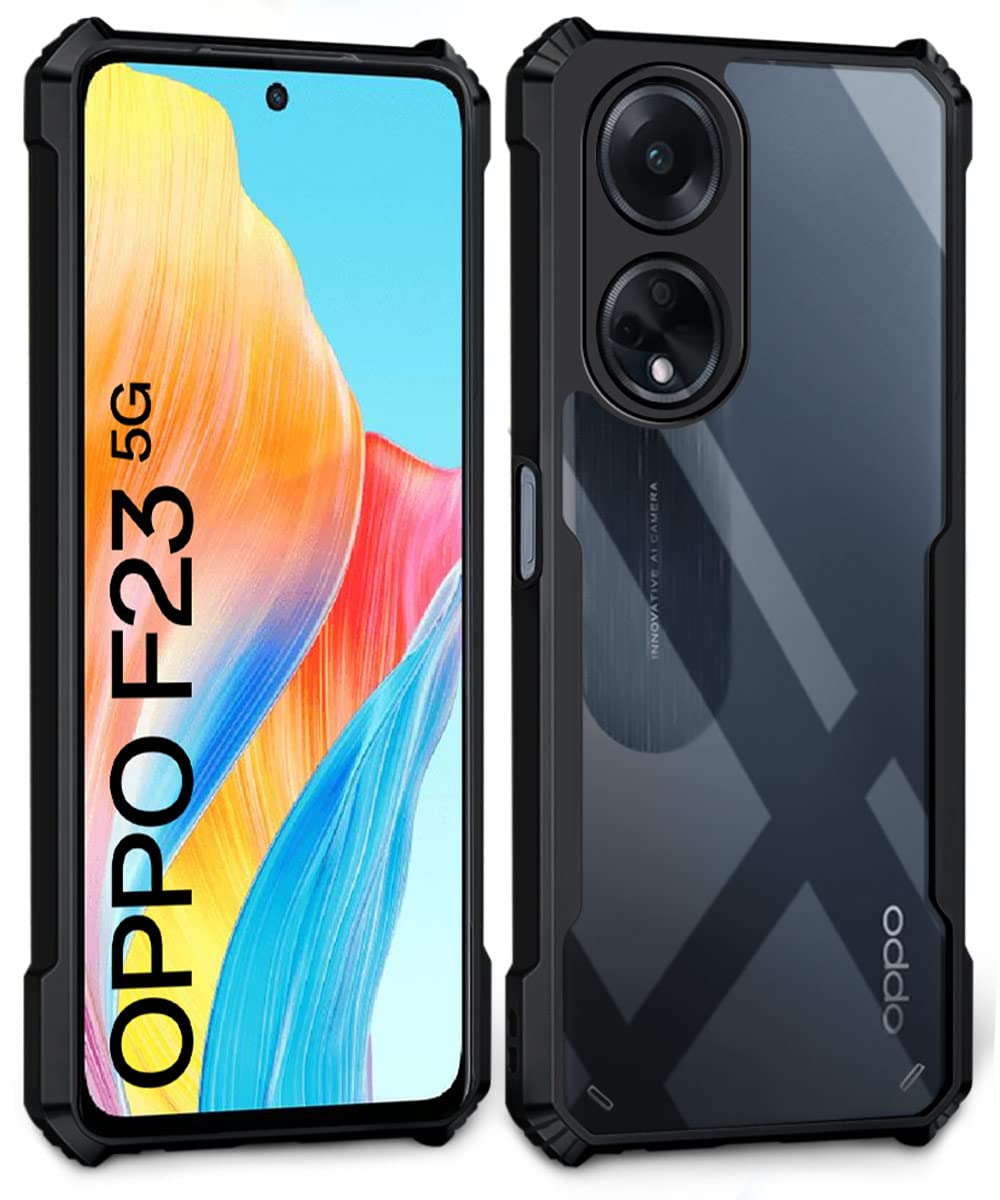 Shock Proof Clear Protective Back Case for Oppo F23 5G – AirEDGE Technology | 360 Degree Camera Protection | Transparent Hybrid Back Case Mobile Cover – Black