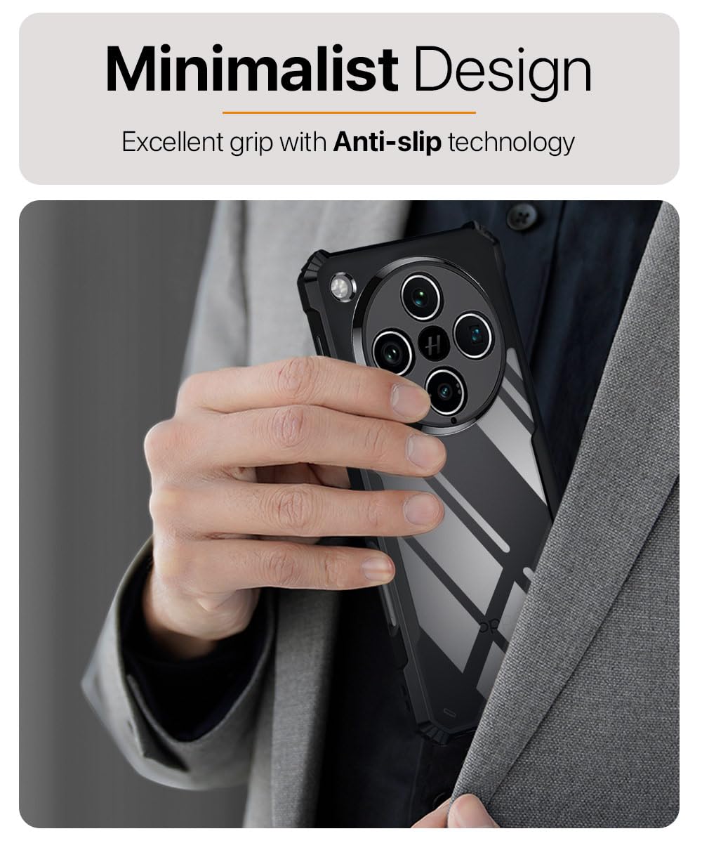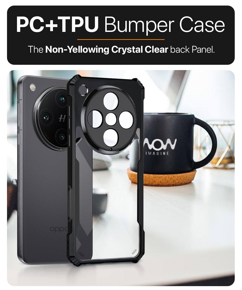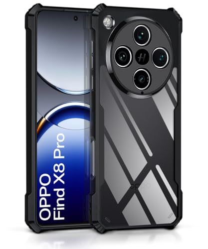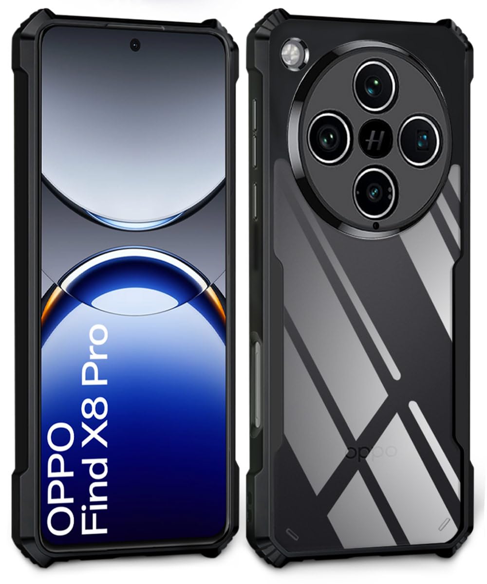 Shock Proof Clear Protective Back Case for Oppo Find X8 Pro – AirEDGE Technology | 360 Degree Camera Protection | Transparent Hybrid Back Case Mobile Cover – Black