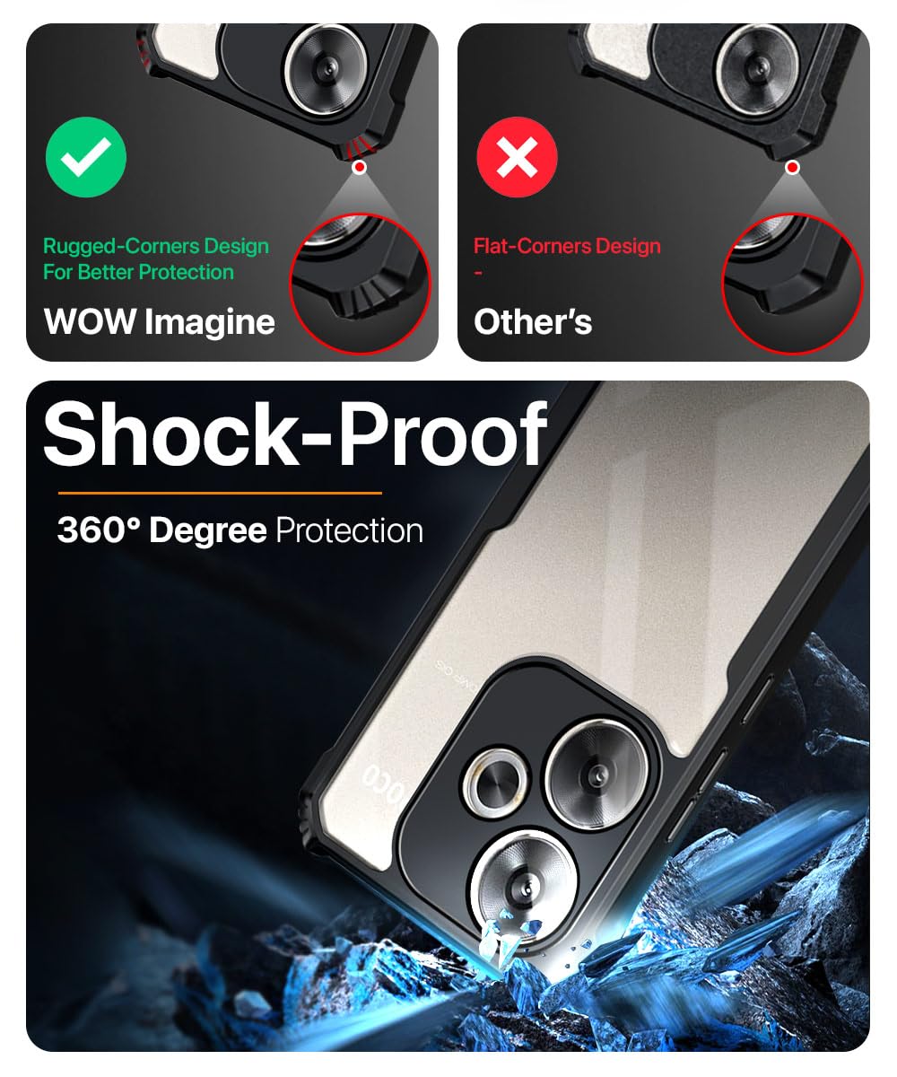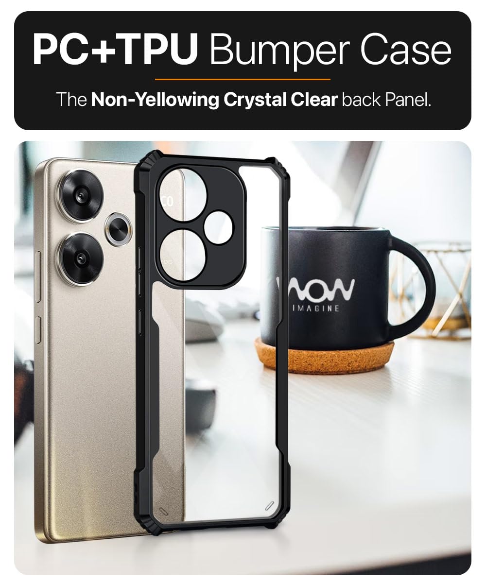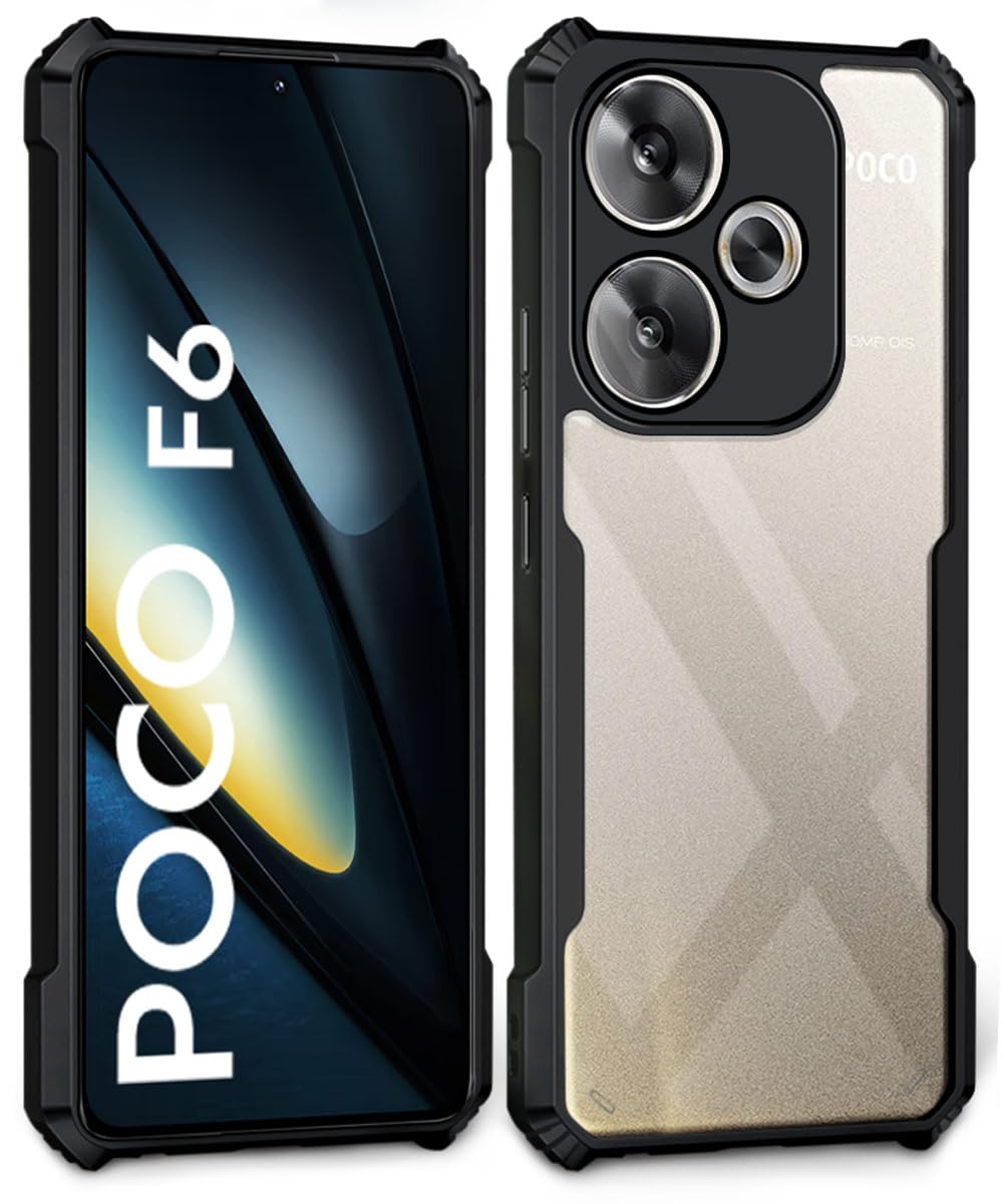 Shock Proof Clear Protective Back Case for Poco F6 5G – AirEDGE Technology | 360 Degree Camera Protection | Transparent Hybrid Back Case Mobile Cover – Black