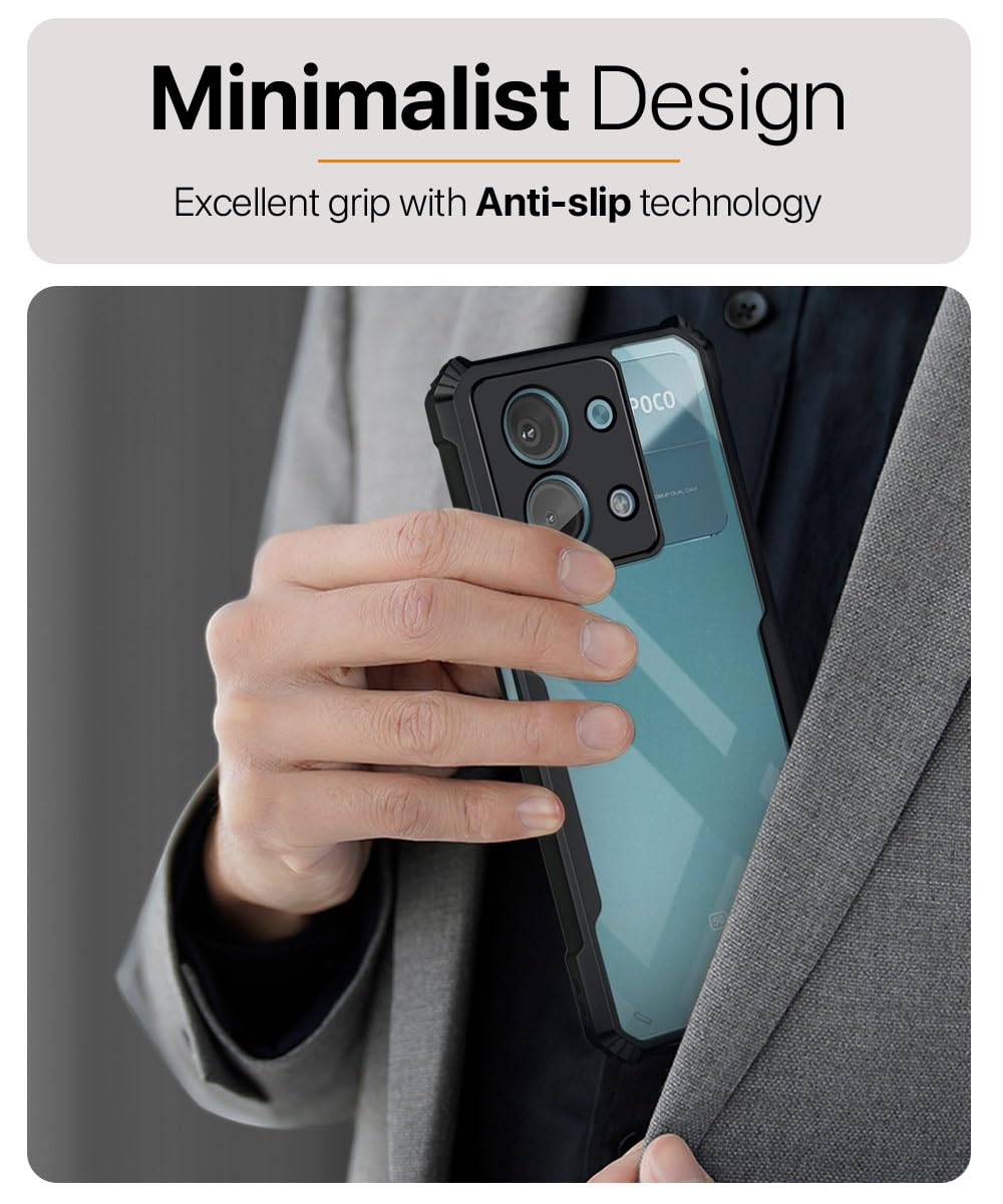 The Shock Proof Clear Protective Back Case for Poco X6 Neo 5G – AirEDGE Technology | 360 Degree Camera Protection | Transparent Hybrid Back Case Mobile Cover – Black is designed with premium quality materials to provide superior protection, durability, and style for your smartphone. It offers a perfect balance between functionality and aesthetics, ensuring your device stays safe from scratches, impacts, and daily wear. Engineered with precision, it features accurate cutouts for ports, buttons, and cameras, making it highly convenient for everyday use. The slim and lightweight design ensures that your device retains its sleek profile without adding unnecessary bulk. Whether it is a nano film tempered glass, a hybrid back case, or a camera lens protector, each product is created with attention to detail to enhance the user experience and extend the life of your smartphone. The material used ensures long-lasting clarity, anti-scratch performance, and resistance against fingerprints and smudges. It is the ideal choice for users who want both style and substance in their smartphone accessories. This product from reflects innovation and craftsmanship, making it a reliable accessory that safeguards your investment while maintaining modern appeal.