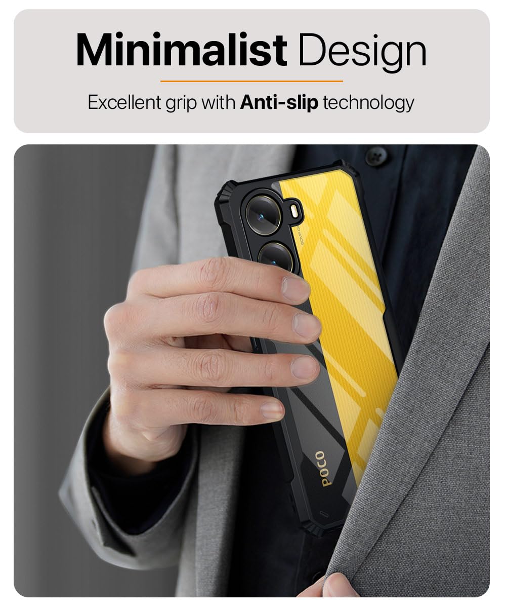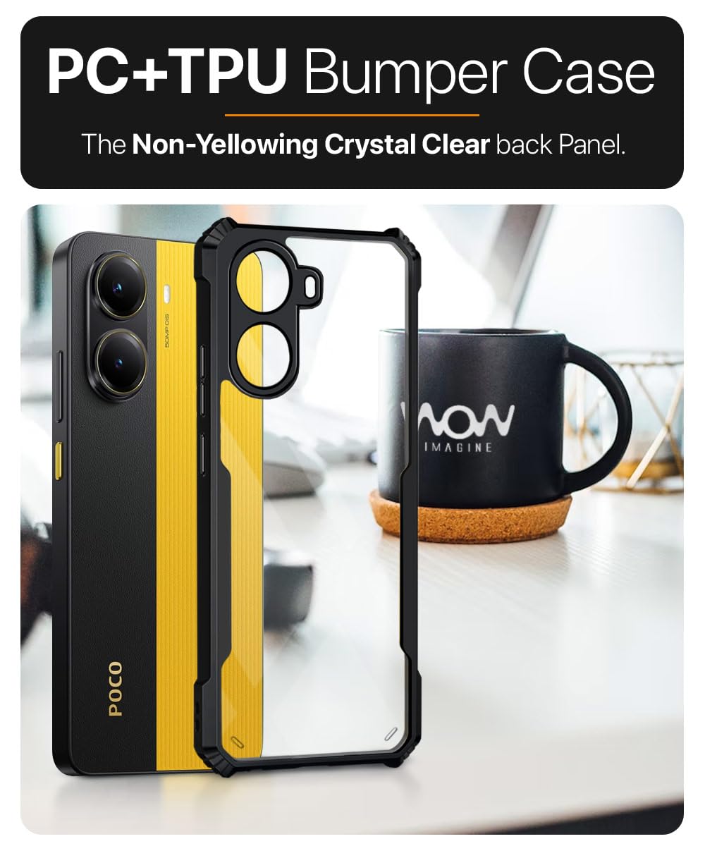 The Shock Proof Clear Protective Back Case for Poco X7 Pro 5G – AirEDGE Technology | 360 Degree Camera Protection | Transparent Hybrid Back Case Mobile Cover – Black is designed with premium quality materials to provide superior protection, durability, and style for your smartphone. It offers a perfect balance between functionality and aesthetics, ensuring your device stays safe from scratches, impacts, and daily wear. Engineered with precision, it features accurate cutouts for ports, buttons, and cameras, making it highly convenient for everyday use. The slim and lightweight design ensures that your device retains its sleek profile without adding unnecessary bulk. Whether it is a nano film tempered glass, a hybrid back case, or a camera lens protector, each product is created with attention to detail to enhance the user experience and extend the life of your smartphone. The material used ensures long-lasting clarity, anti-scratch performance, and resistance against fingerprints and smudges. It is the ideal choice for users who want both style and substance in their smartphone accessories. This product from reflects innovation and craftsmanship, making it a reliable accessory that safeguards your investment while maintaining modern appeal.