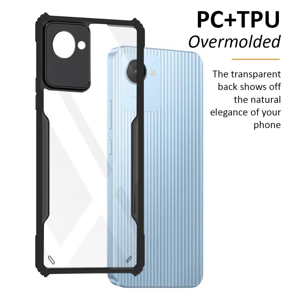 The Shock Proof Clear Protective Back Case for Realme C30 | Realme narzo 50i Prime – AirEDGE Technology | 360 Degree Camera Protection | Transparent Hybrid Back Case Mobile Cover – Black is designed with premium quality materials to provide superior protection, durability, and style for your smartphone. It offers a perfect balance between functionality and aesthetics, ensuring your device stays safe from scratches, impacts, and daily wear. Engineered with precision, it features accurate cutouts for ports, buttons, and cameras, making it highly convenient for everyday use. The slim and lightweight design ensures that your device retains its sleek profile without adding unnecessary bulk. Whether it is a nano film tempered glass, a hybrid back case, or a camera lens protector, each product is created with attention to detail to enhance the user experience and extend the life of your smartphone. The material used ensures long-lasting clarity, anti-scratch performance, and resistance against fingerprints and smudges. It is the ideal choice for users who want both style and substance in their smartphone accessories. This product from reflects innovation and craftsmanship, making it a reliable accessory that safeguards your investment while maintaining modern appeal.