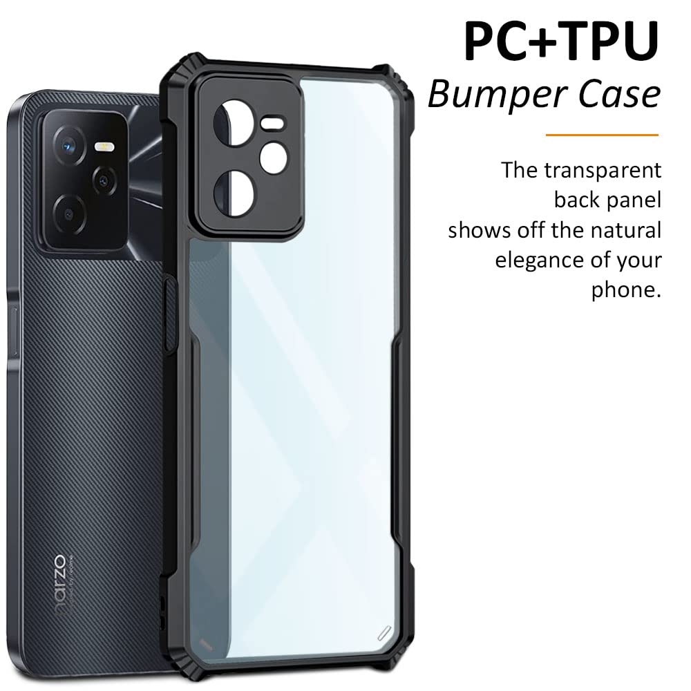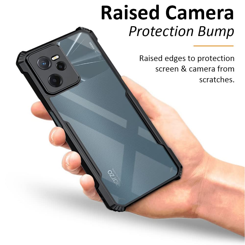 Shock Proof Clear Protective Back Case for Realme C35 – AirEDGE Technology | 360 Degree Camera Protection | Transparent Hybrid Back Case Mobile Cover – Black