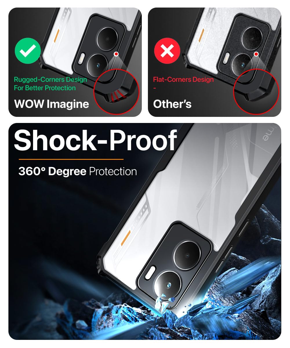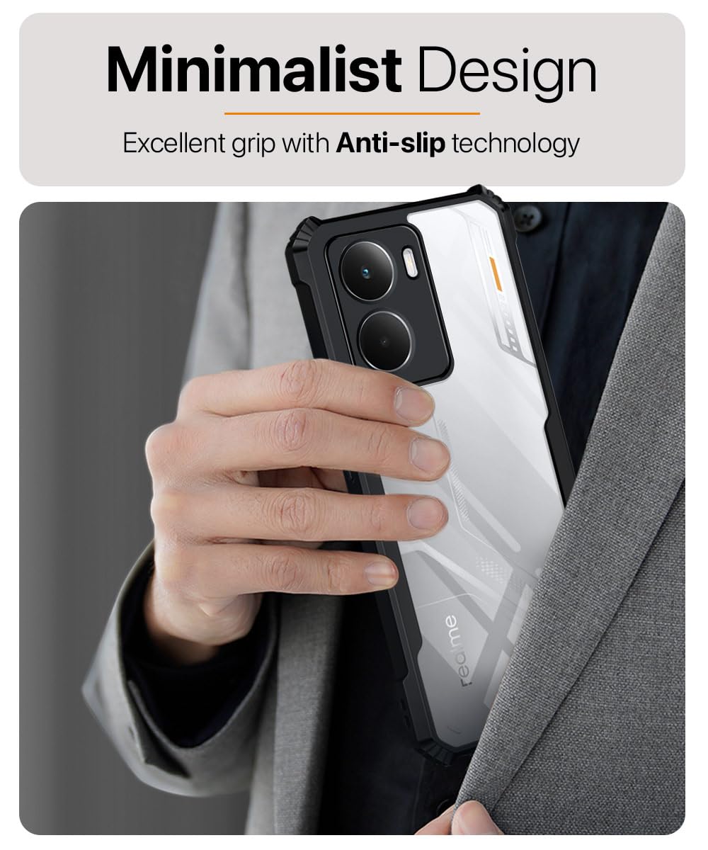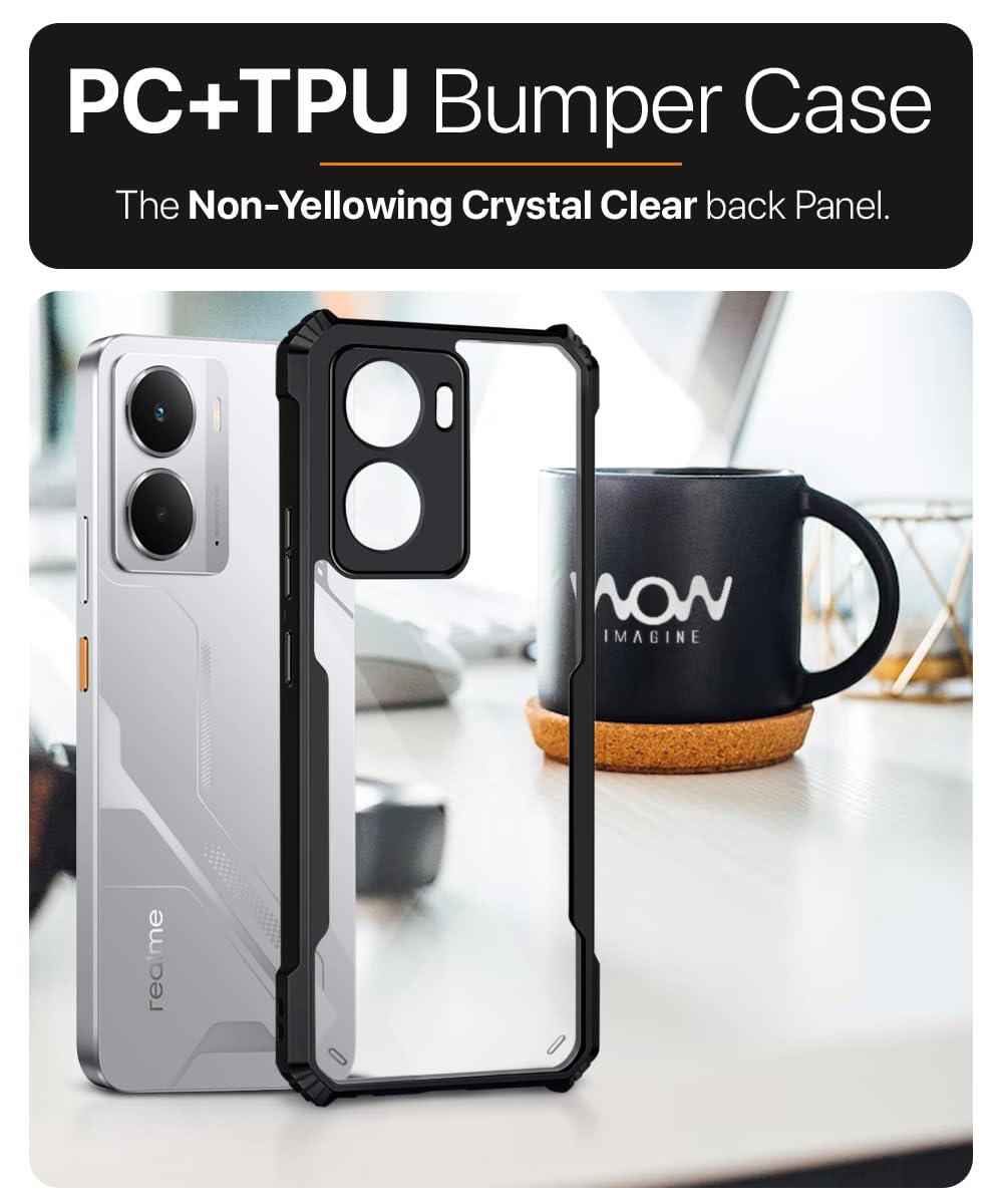 The Shock Proof Clear Protective Back Case for Realme P3 5G – AirEDGE Technology | 360 Degree Camera Protection | Transparent Hybrid Back Case Mobile Cover – Black is designed with premium quality materials to provide superior protection, durability, and style for your smartphone. It offers a perfect balance between functionality and aesthetics, ensuring your device stays safe from scratches, impacts, and daily wear. Engineered with precision, it features accurate cutouts for ports, buttons, and cameras, making it highly convenient for everyday use. The slim and lightweight design ensures that your device retains its sleek profile without adding unnecessary bulk. Whether it is a nano film tempered glass, a hybrid back case, or a camera lens protector, each product is created with attention to detail to enhance the user experience and extend the life of your smartphone. The material used ensures long-lasting clarity, anti-scratch performance, and resistance against fingerprints and smudges. It is the ideal choice for users who want both style and substance in their smartphone accessories. This product from reflects innovation and craftsmanship, making it a reliable accessory that safeguards your investment while maintaining modern appeal.