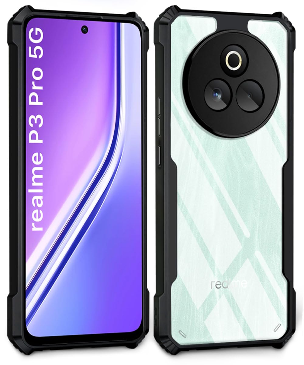 Shock Proof Clear Protective Back Case for Realme P3 Pro 5G – AirEDGE Technology | 360 Degree Camera Protection | Transparent Hybrid Back Case Mobile Cover – Black