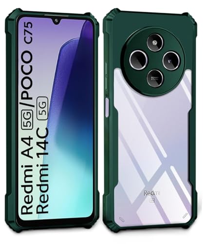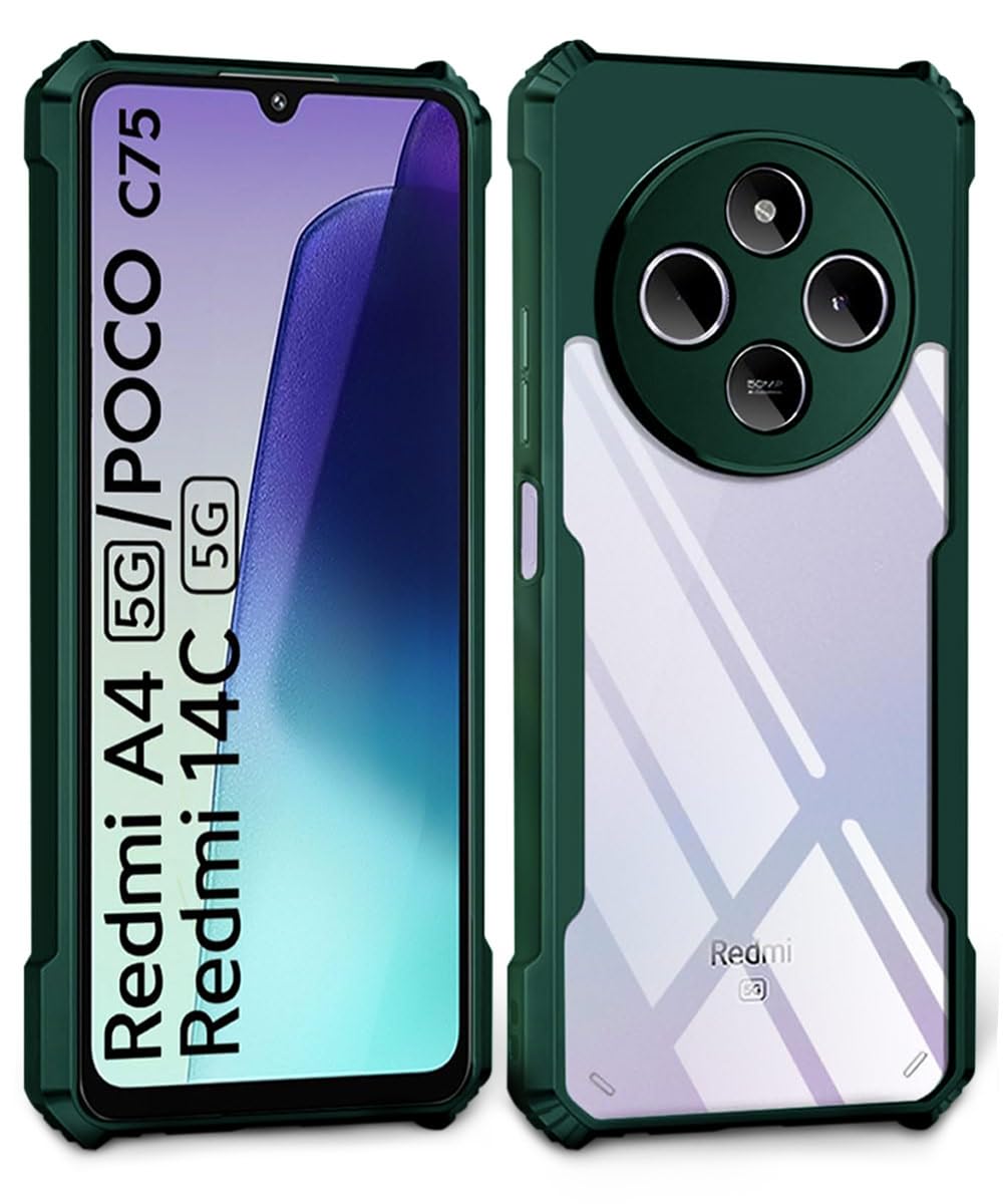 Shock Proof Clear Protective Back Case for Redmi A4 5G | Poco C75 5G | Redmi 14C 5G – AirEDGE Technology | 360 Degree Camera Protection | Transparent Hybrid Back Case Mobile Cover – Green