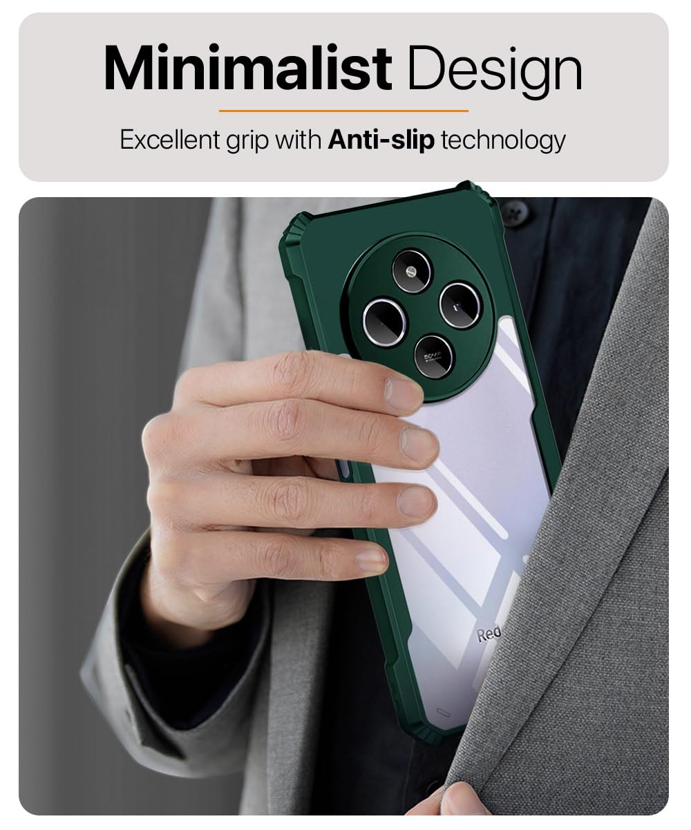 The Shock Proof Clear Protective Back Case for Redmi A4 5G | Poco C75 5G | Redmi 14C 5G – AirEDGE Technology | 360 Degree Camera Protection | Transparent Hybrid Back Case Mobile Cover – Green is designed with premium quality materials to provide superior protection, durability, and style for your smartphone. It offers a perfect balance between functionality and aesthetics, ensuring your device stays safe from scratches, impacts, and daily wear. Engineered with precision, it features accurate cutouts for ports, buttons, and cameras, making it highly convenient for everyday use. The slim and lightweight design ensures that your device retains its sleek profile without adding unnecessary bulk. Whether it is a nano film tempered glass, a hybrid back case, or a camera lens protector, each product is created with attention to detail to enhance the user experience and extend the life of your smartphone. The material used ensures long-lasting clarity, anti-scratch performance, and resistance against fingerprints and smudges. It is the ideal choice for users who want both style and substance in their smartphone accessories. This product from reflects innovation and craftsmanship, making it a reliable accessory that safeguards your investment while maintaining modern appeal.