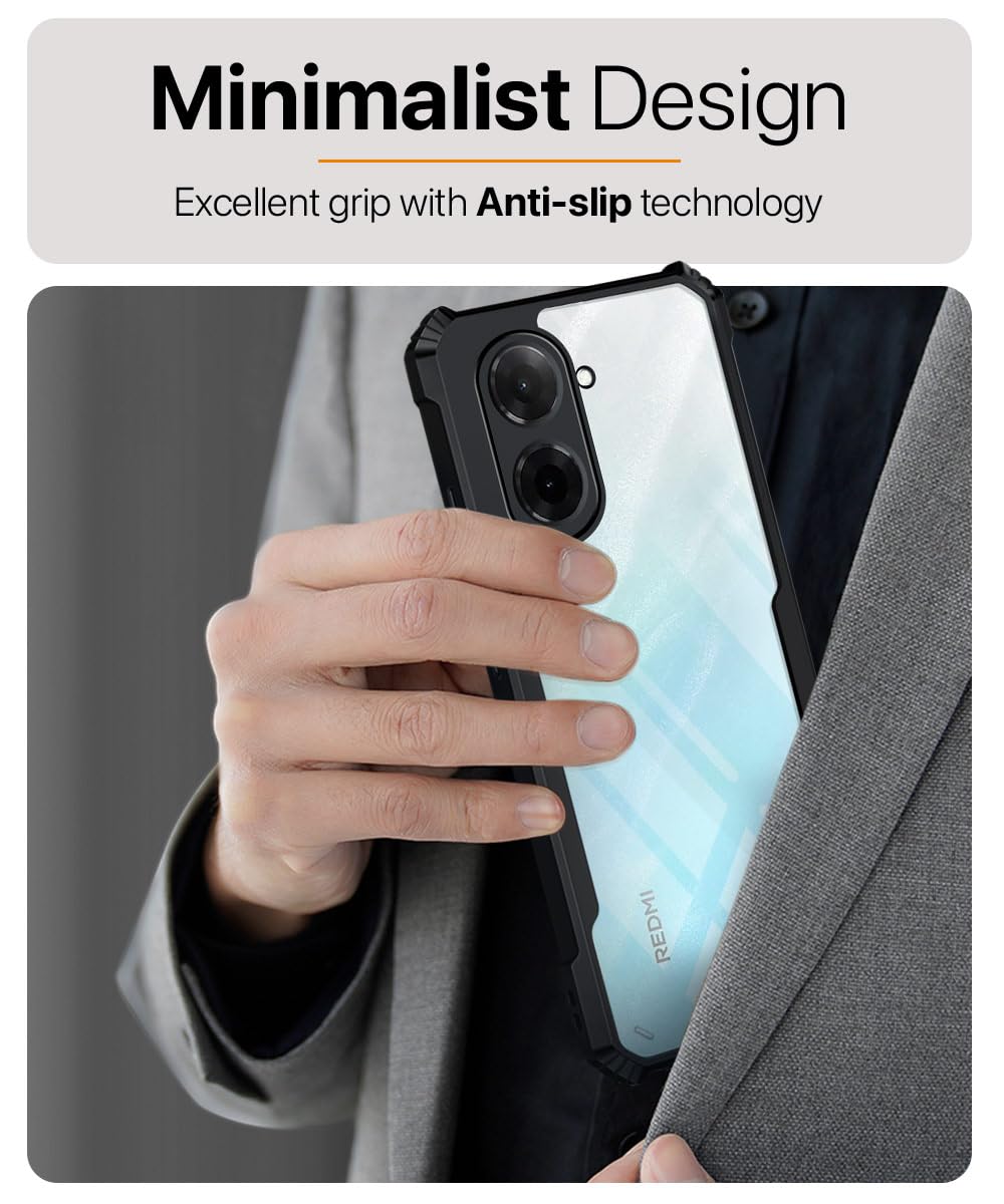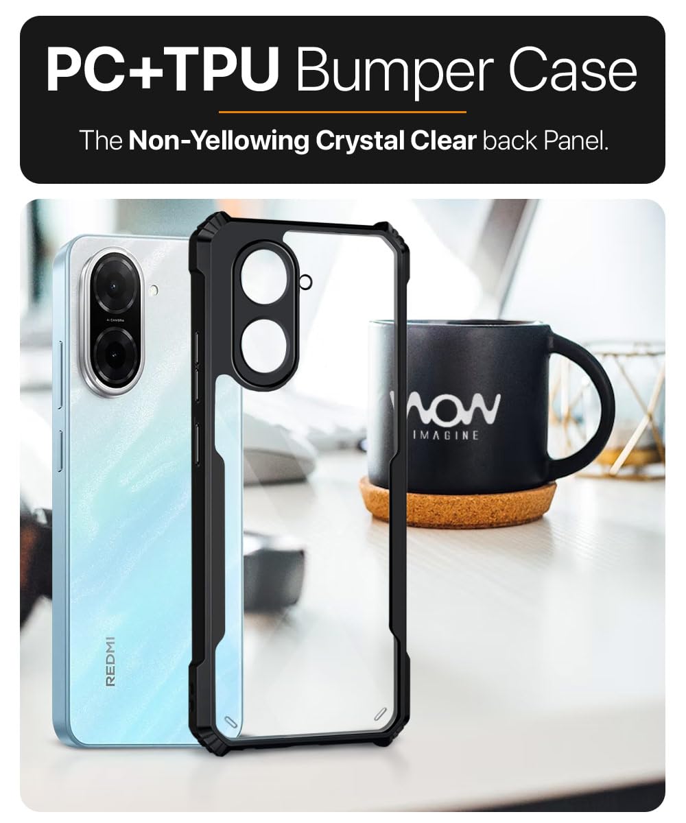 The Shock Proof Clear Protective Back Case for Redmi A5 | Poco C71 – AirEDGE Technology | 360 Degree Camera Protection | Transparent Hybrid Back Case Mobile Cover – Black is designed with premium quality materials to provide superior protection, durability, and style for your smartphone. It offers a perfect balance between functionality and aesthetics, ensuring your device stays safe from scratches, impacts, and daily wear. Engineered with precision, it features accurate cutouts for ports, buttons, and cameras, making it highly convenient for everyday use. The slim and lightweight design ensures that your device retains its sleek profile without adding unnecessary bulk. Whether it is a nano film tempered glass, a hybrid back case, or a camera lens protector, each product is created with attention to detail to enhance the user experience and extend the life of your smartphone. The material used ensures long-lasting clarity, anti-scratch performance, and resistance against fingerprints and smudges. It is the ideal choice for users who want both style and substance in their smartphone accessories. This product from reflects innovation and craftsmanship, making it a reliable accessory that safeguards your investment while maintaining modern appeal.