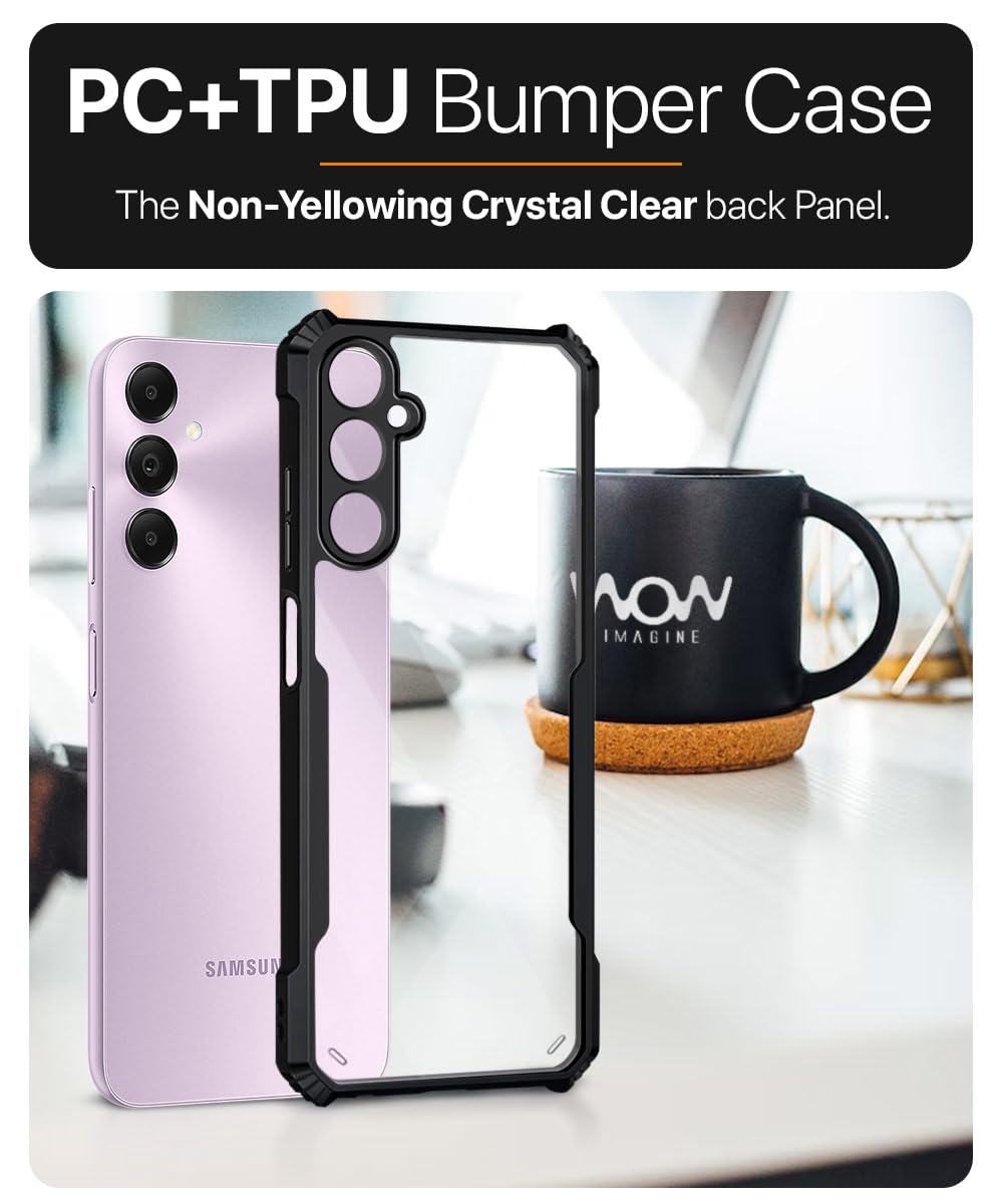 The Shock Proof Clear Protective Back Case for Samsung Galaxy A05S 5G | Galaxy M14 4G – AirEDGE Technology | 360 Degree Camera Protection | Transparent Hybrid Back Case Mobile Cover – Black is designed with premium quality materials to provide superior protection, durability, and style for your smartphone. It offers a perfect balance between functionality and aesthetics, ensuring your device stays safe from scratches, impacts, and daily wear. Engineered with precision, it features accurate cutouts for ports, buttons, and cameras, making it highly convenient for everyday use. The slim and lightweight design ensures that your device retains its sleek profile without adding unnecessary bulk. Whether it is a nano film tempered glass, a hybrid back case, or a camera lens protector, each product is created with attention to detail to enhance the user experience and extend the life of your smartphone. The material used ensures long-lasting clarity, anti-scratch performance, and resistance against fingerprints and smudges. It is the ideal choice for users who want both style and substance in their smartphone accessories. This product from reflects innovation and craftsmanship, making it a reliable accessory that safeguards your investment while maintaining modern appeal.