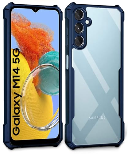 Shock Proof Clear Protective Back Case for Samsung Galaxy M14 5G AirEDGE Technology | 360 Degree Camera Protection | Transparent Hybrid Back Case Mobile Cover Blue