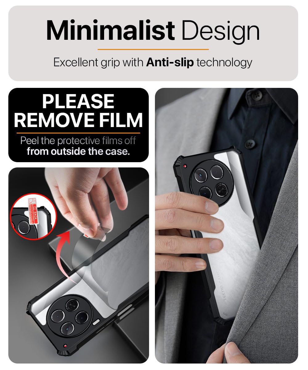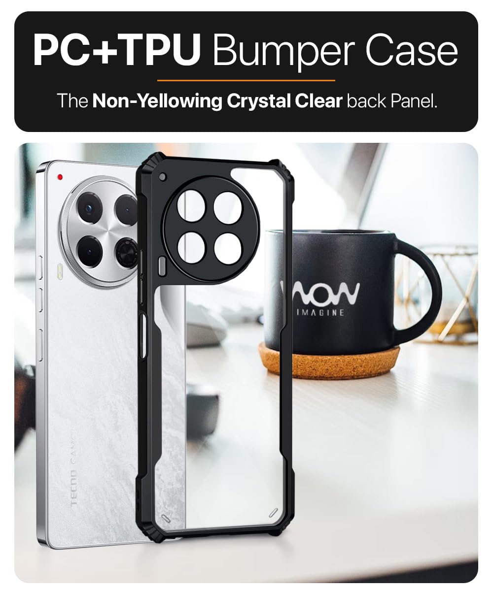 Shock Proof Clear Protective Back Case for Tecno Camon 30 5G AirEDGE Technology | 360 Degree Camera Protection | Transparent Hybrid Back Case Mobile Cover Black is designed with premium quality materials to provide superior protection, durability, and style for your smartphone. It offers a perfect balance between functionality and aesthetics, ensuring your device stays safe from scratches, impacts, and daily wear. Engineered with precision, it features accurate cutouts for ports, buttons, and cameras, making it highly convenient for everyday use. The slim and lightweight design ensures that your device retains its sleek profile without adding unnecessary bulk. Whether it is a nano film tempered glass, a hybrid back case, or a camera lens protector, each product is created with attention to detail to enhance the user experience and extend the life of your smartphone. The material used ensures longlasting clarity, antiscratch performance, and resistance against fingerprints and smudges. It is the ideal choice for users who want both style and substance in their smartphone accessories. This product from reflects innovation and craftsmanship, making it a reliable accessory that safeguards your investment while maintaining modern appeal.