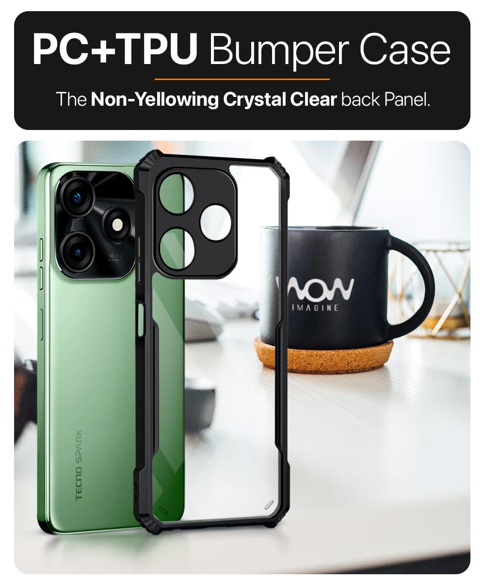 Shock Proof Clear Protective Back Case for Tecno Spark 10C – AirEDGE Technology | 360 Degree Camera Protection | Transparent Hybrid Back Case Mobile Cover – Black