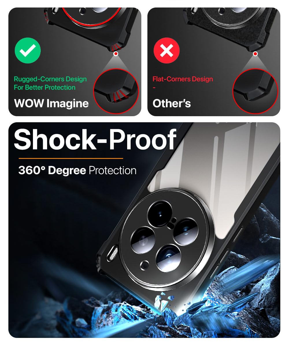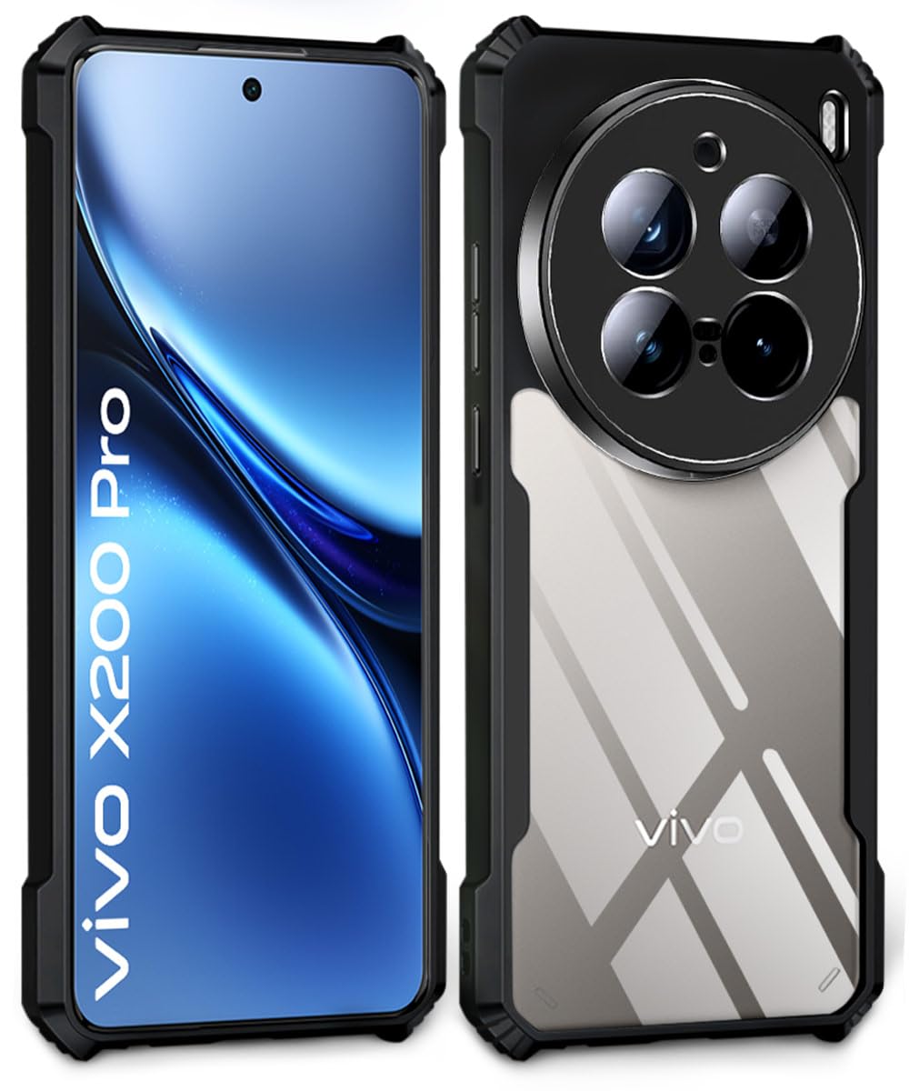 Shock Proof Clear Protective Back Case for VIVO X200 Pro 5G – AirEDGE Technology | 360 Degree Camera Protection | Transparent Hybrid Back Case Mobile Cover – Black