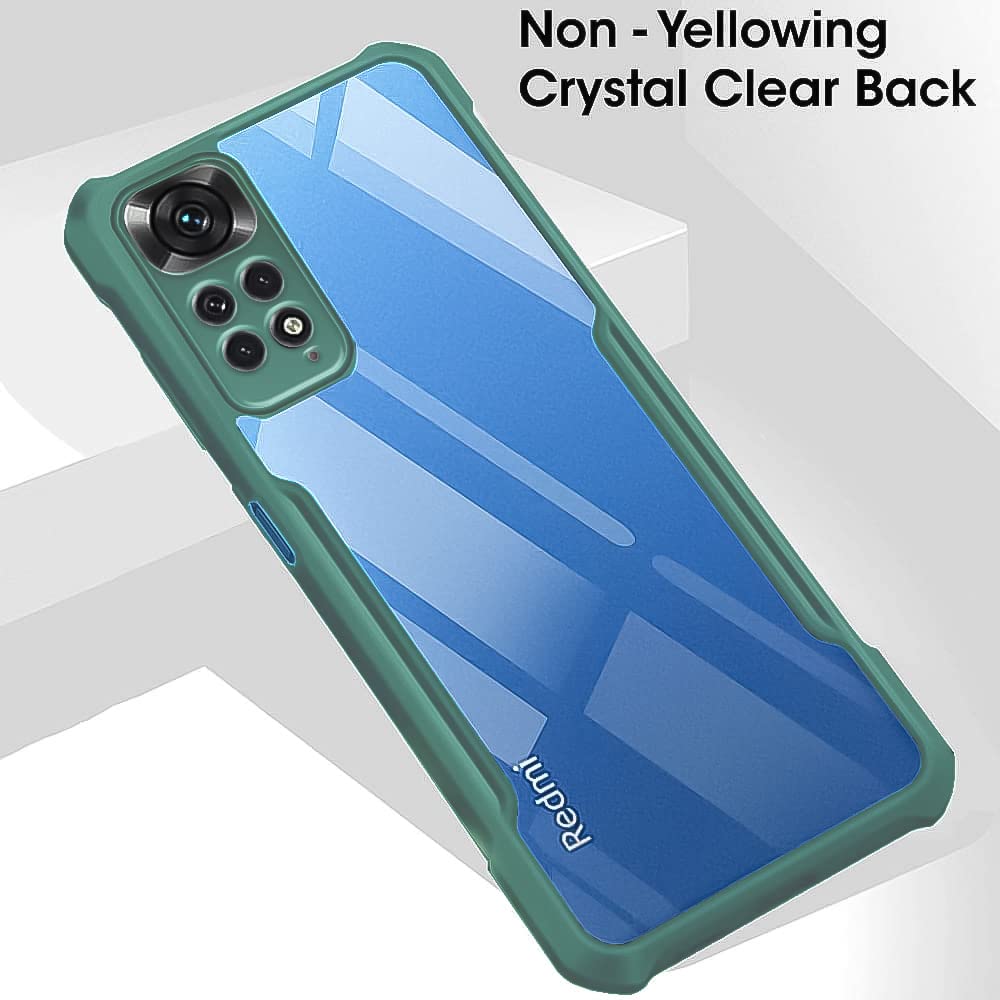 Shock Proof Clear Protective Back Case for Xiaomi Redmi Note 11 | 11s – AirEDGE Technology | 360 Degree Camera Protection | Transparent Hybrid Back Case Mobile Cover – Green