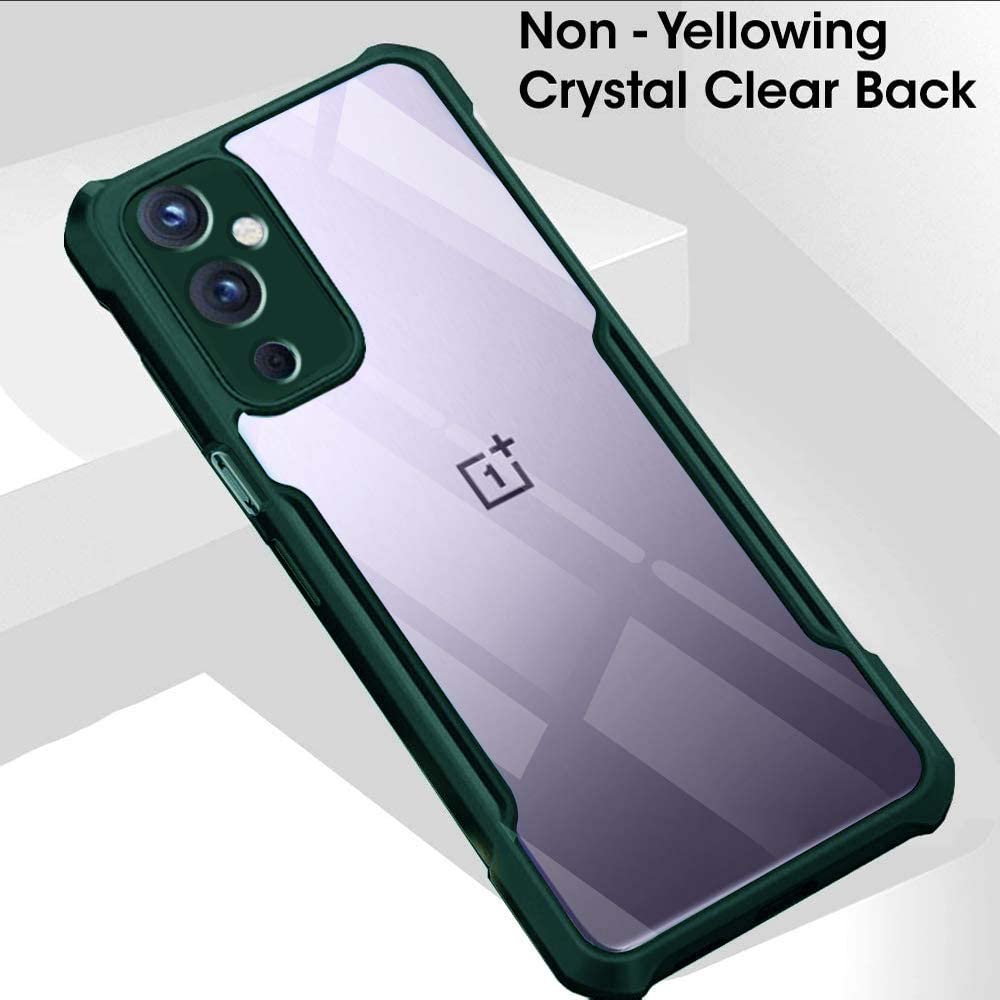 Shock Proof Clear Transparent Back Case Mobile Cover for 1+OnePlus 9 (Hard | Hybrid PC + TPU | Full Armour Device & Camera Protection | Camo Green)