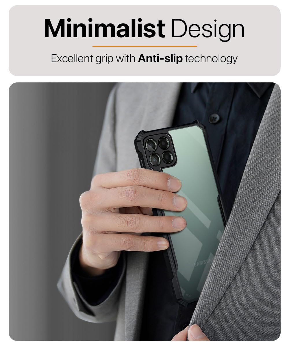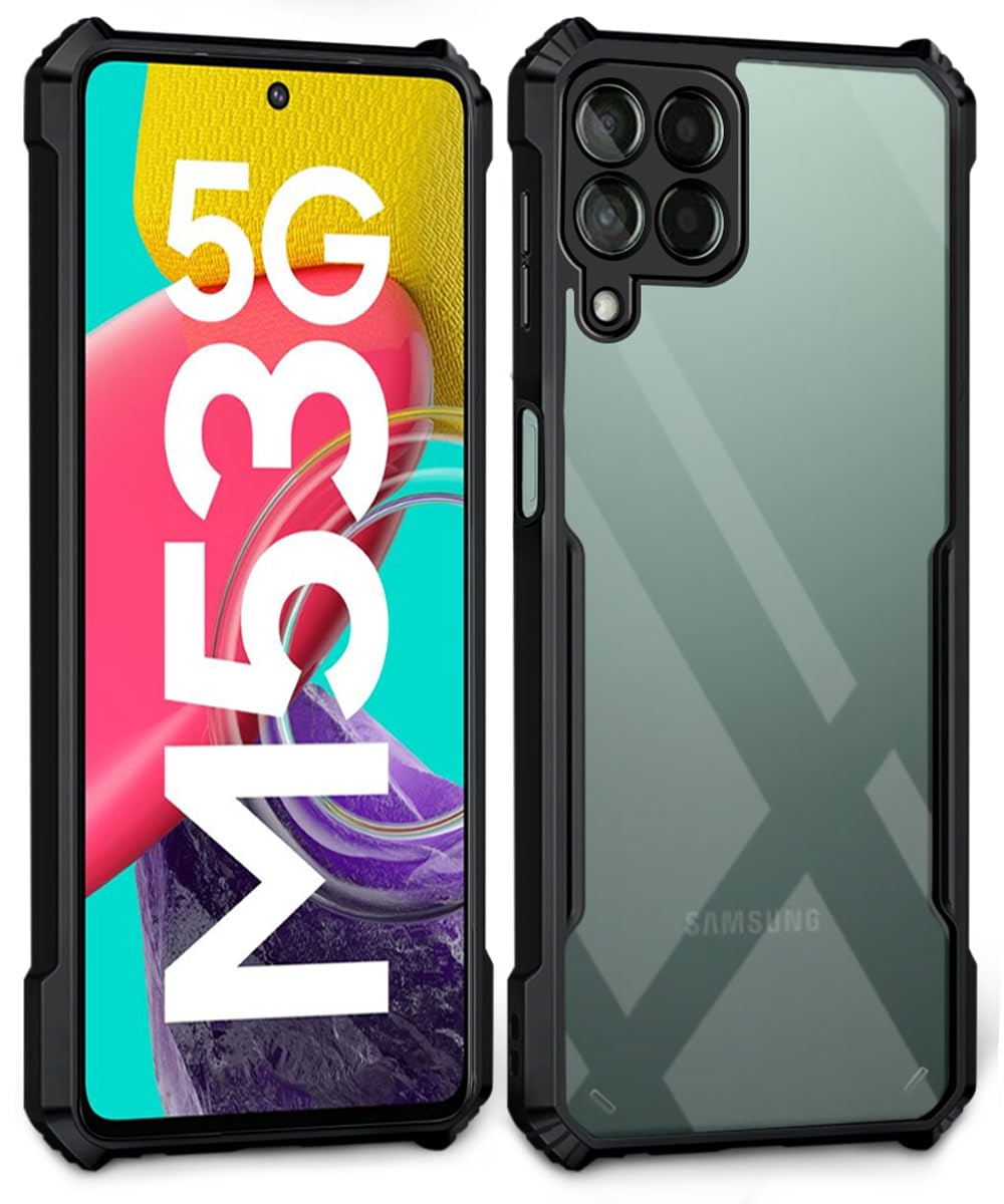Shock Proof Crystal Clear Back Case Mobile Cover for Samsung Galaxy M53 5G | Camera Protection | Hybrid PC + TPU | Protective Design | Earthy Black is designed with premium quality materials to provide superior protection, durability, and style for your smartphone. It offers a perfect balance between functionality and aesthetics, ensuring your device stays safe from scratches, impacts, and daily wear. Engineered with precision, it features accurate cutouts for ports, buttons, and cameras, making it highly convenient for everyday use. The slim and lightweight design ensures that your device retains its sleek profile without adding unnecessary bulk. Whether it is a nano film tempered glass, a hybrid back case, or a camera lens protector, each product is created with attention to detail to enhance the user experience and extend the life of your smartphone. The material used ensures longlasting clarity, antiscratch performance, and resistance against fingerprints and smudges. It is the ideal choice for users who want both style and substance in their smartphone accessories. This product from reflects innovation and craftsmanship, making it a reliable accessory that safeguards your investment while maintaining modern appeal.