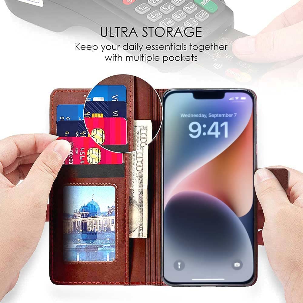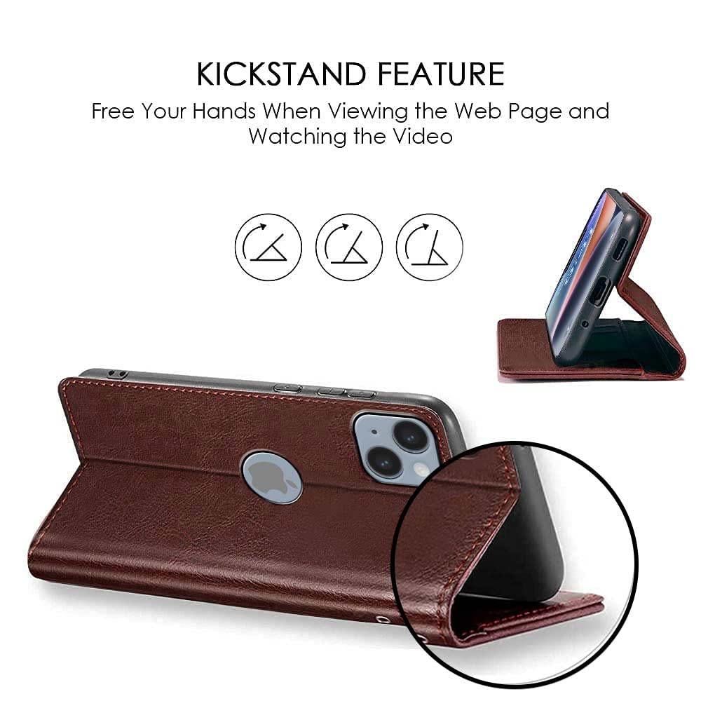 Shock Proof Flip Cover Back Case for Apple Iphone 14 | Magnetic Wallet Leather Case with Stand