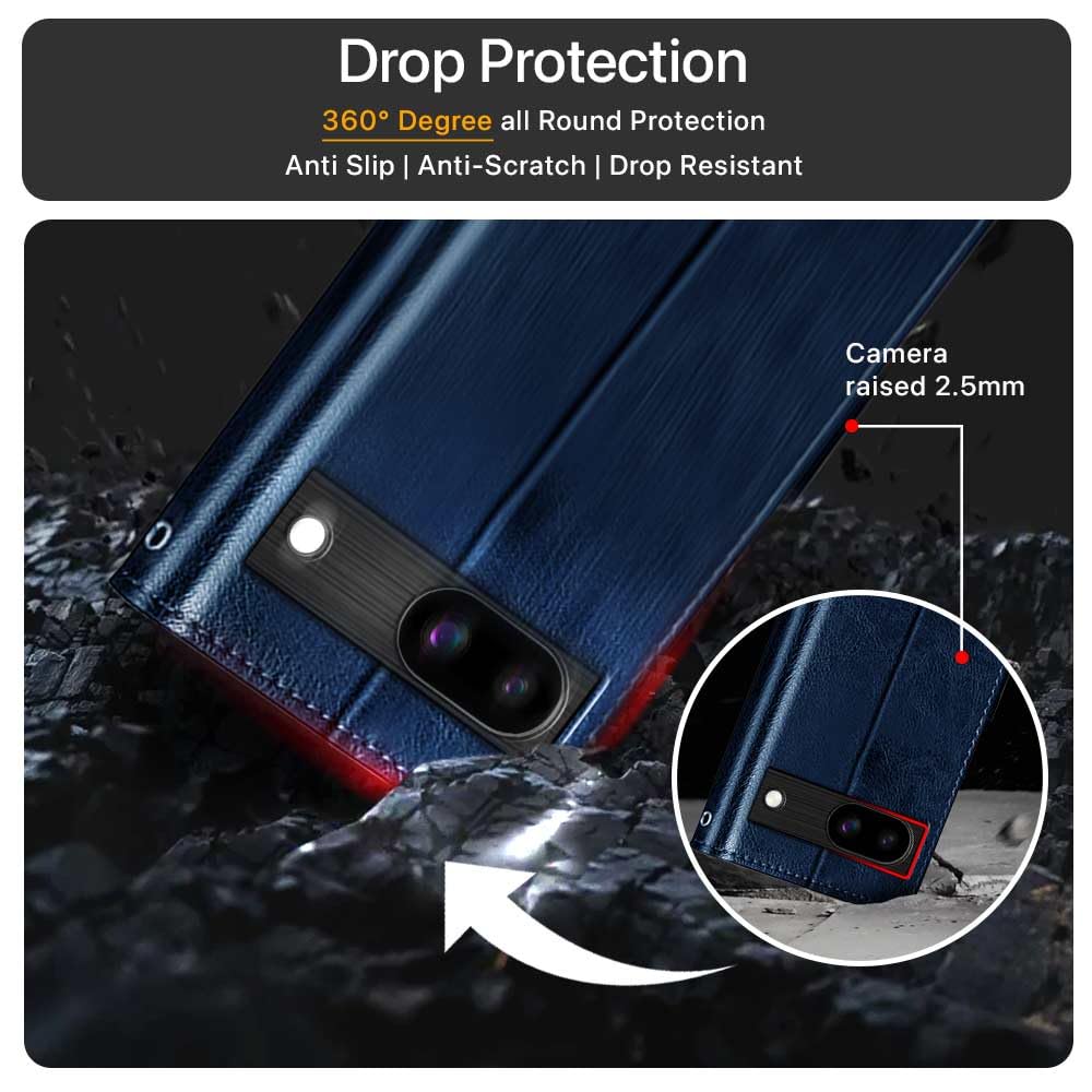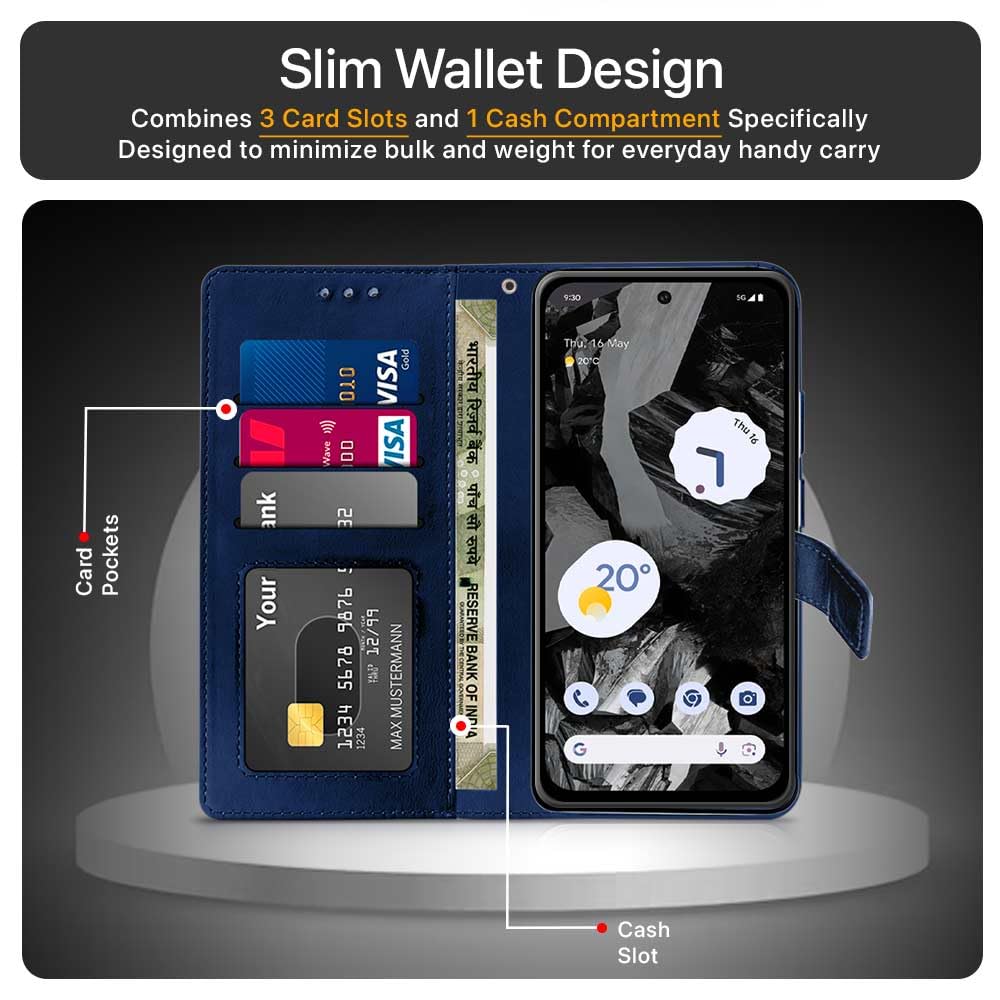 Shock Proof Flip Cover Back Case for Google Pixel 8A | Magnetic Wallet Leather Case with Stand