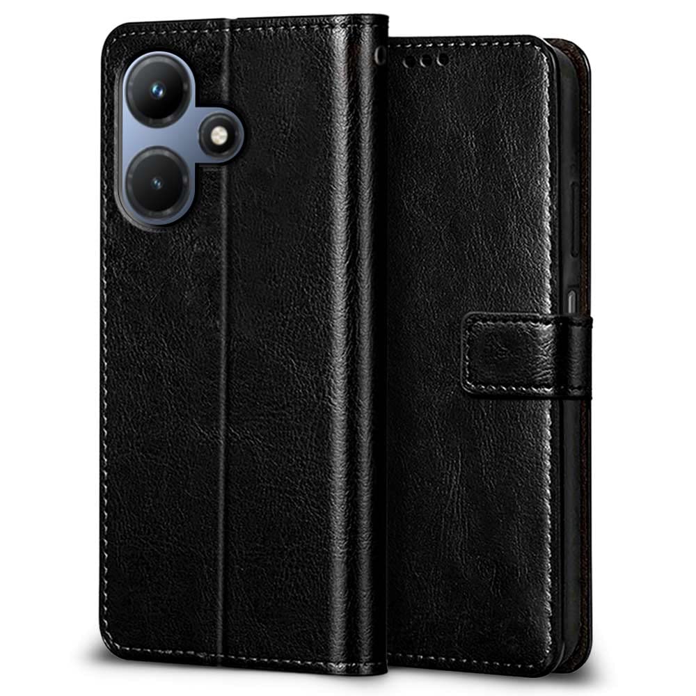 Buy premium shock proof flip cover back case for infinix hot 30i. Leather finish with magnetic flip closure, wallet pockets and stand support. Durable protection against drops and scratches with a perfect fit for infinix hot 30i.