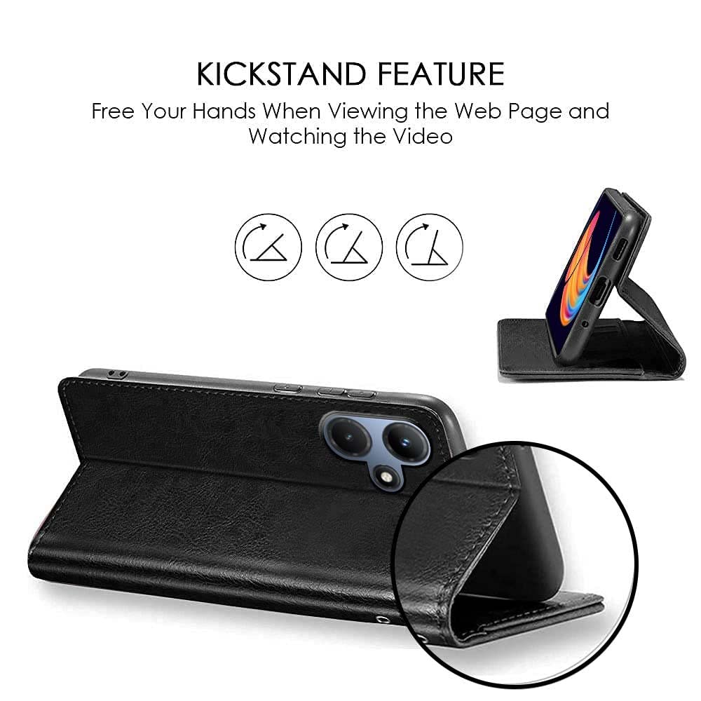 Shock Proof Flip Cover Back Case for Infinix Hot 30I | Magnetic Wallet Leather Case with Stand