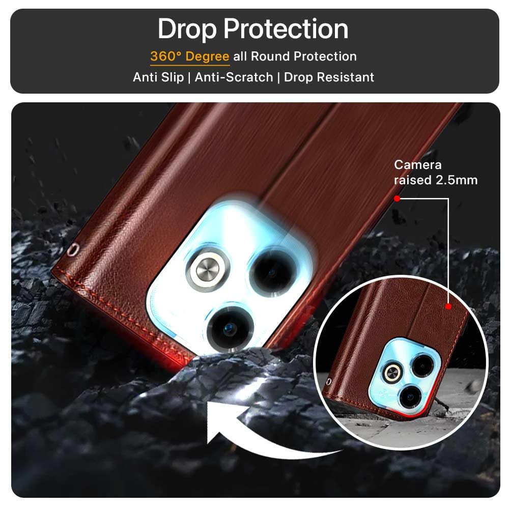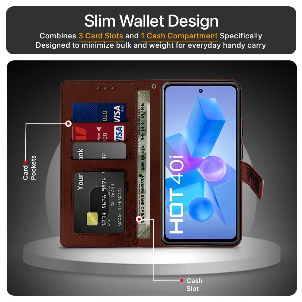 Shock Proof Flip Cover Back Case for Infinix Hot 40I | Magnetic Wallet Leather Case with Stand