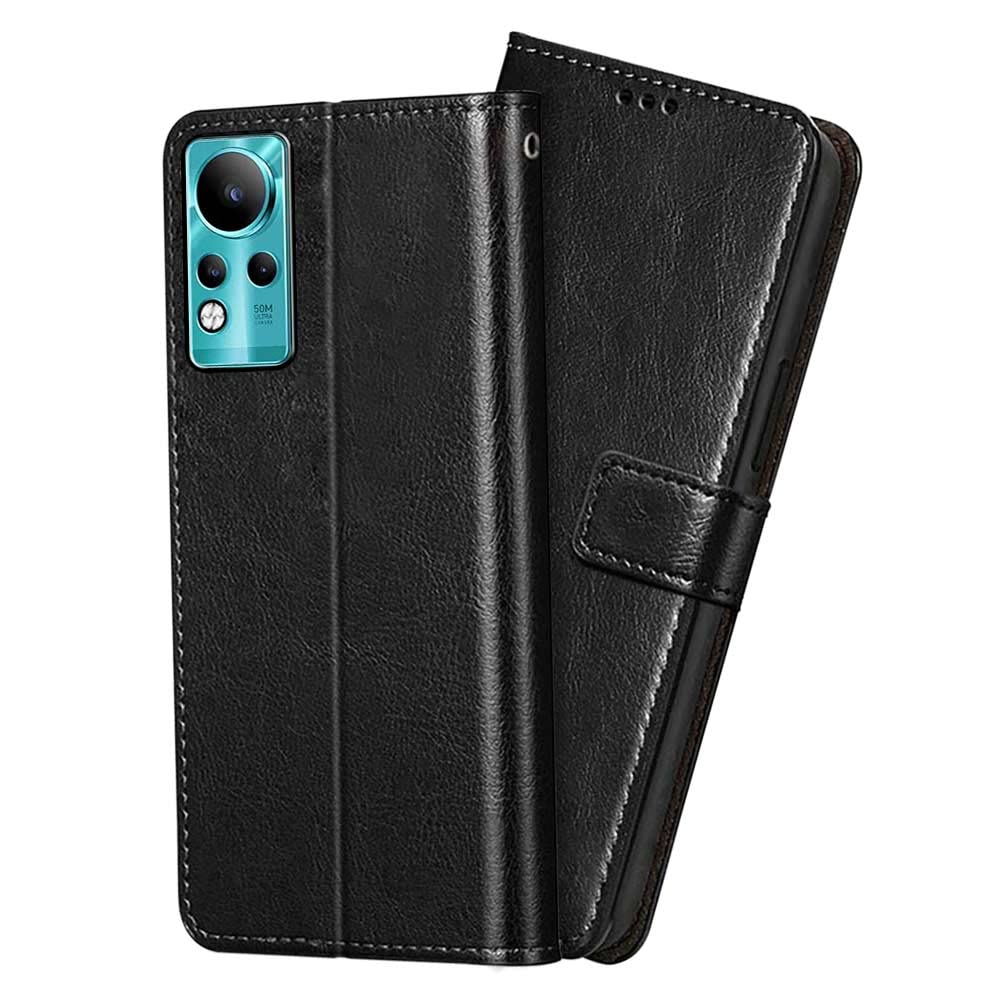 Buy premium shock proof flip cover back case for infinix note 11. Leather finish with magnetic flip closure, wallet pockets and stand support. Durable protection against drops and scratches with a perfect fit for infinix note 11.
