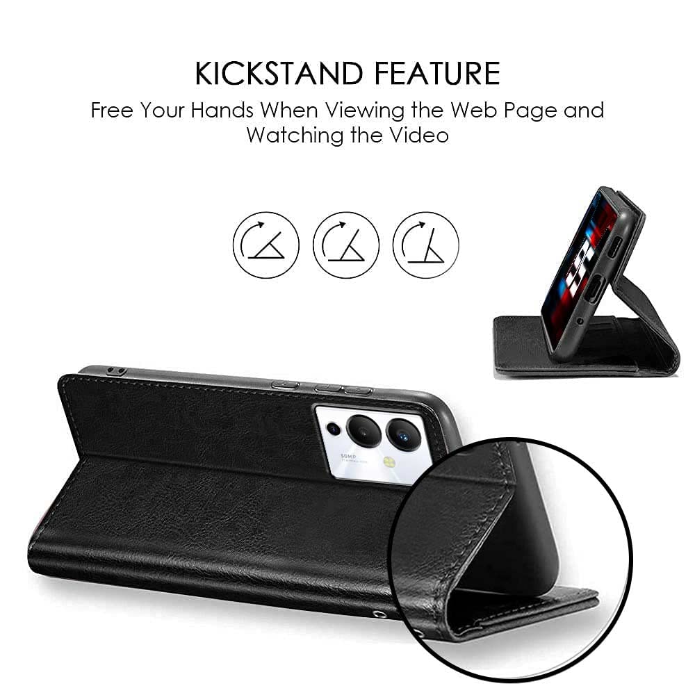 Shock Proof Flip Cover Back Case for Hmd Crest Max 5G | Magnetic Wallet Leather Case with Stand