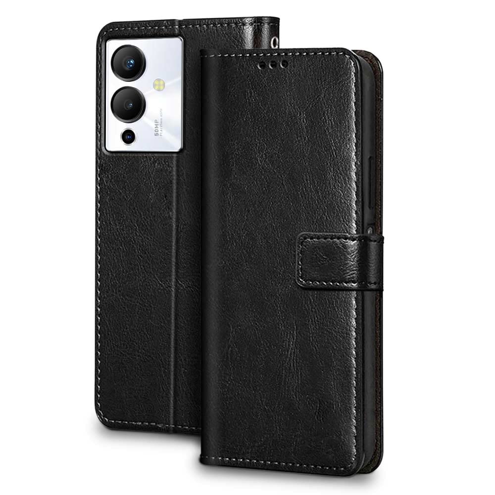 Buy premium shock proof flip cover back case for infinix note 12 5g. Leather finish with magnetic flip closure, wallet pockets and stand support. Durable protection against drops and scratches with a perfect fit for infinix note 12 5g.