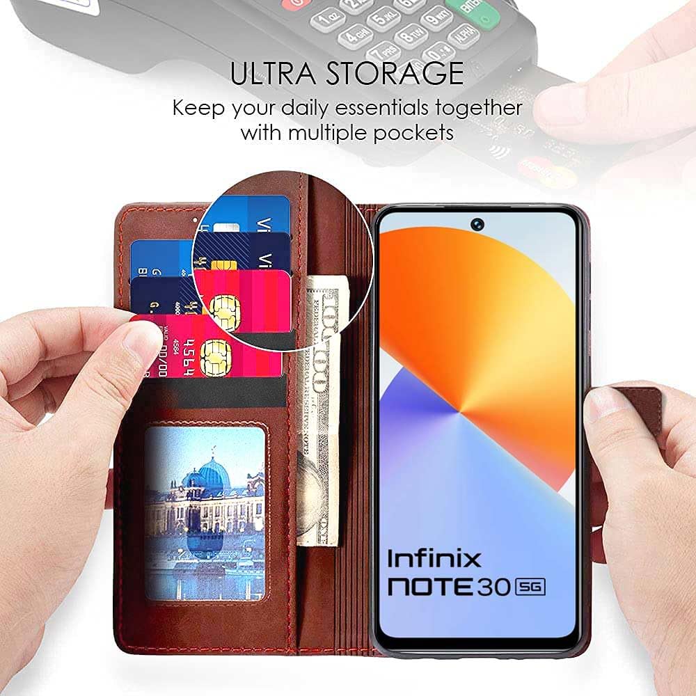 Shock Proof Flip Cover Back Case for Infinix Note 30 5G | Magnetic Wallet Leather Case with Stand