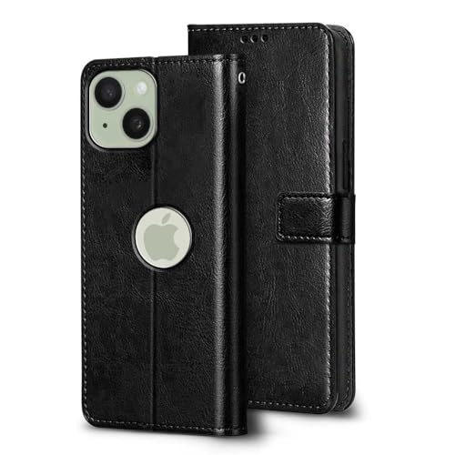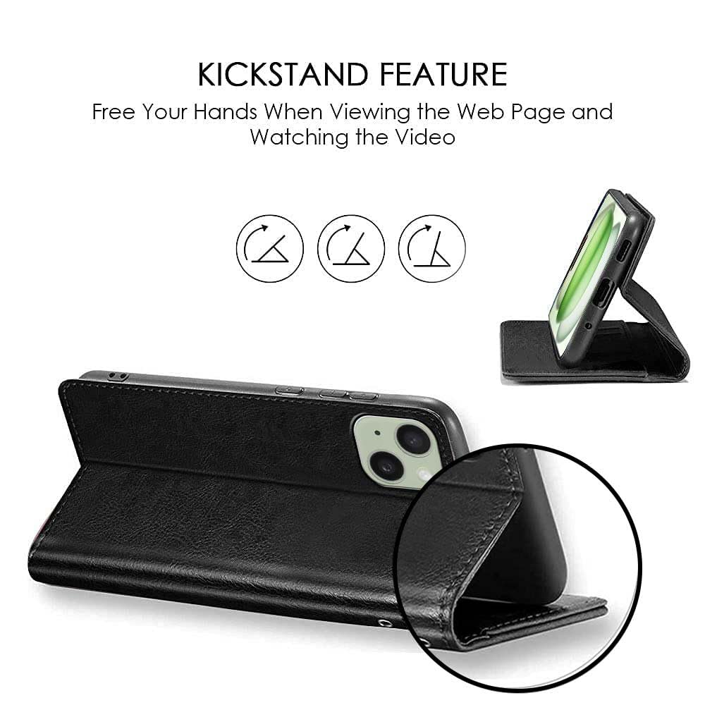 Shock Proof Flip Cover Back Case for Iphone 15 | Magnetic Wallet Leather Case with Stand