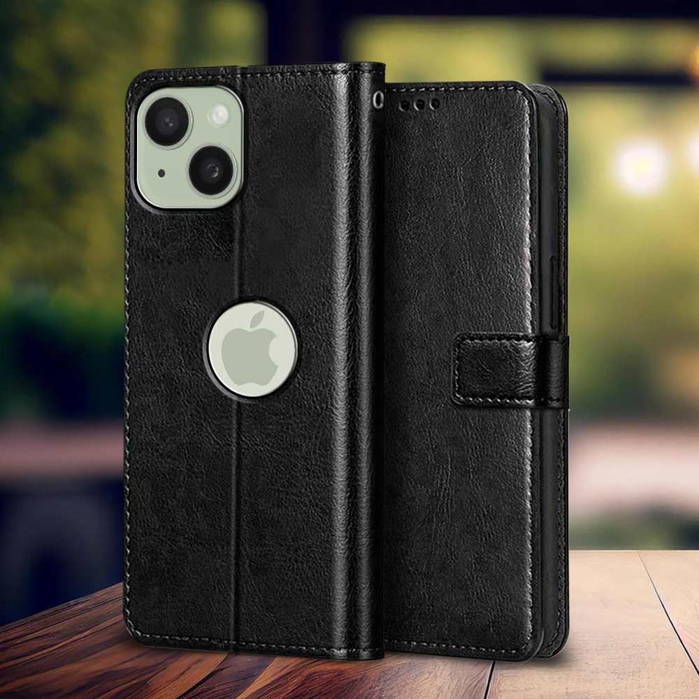 Buy premium shock proof flip cover back case for iphone 15. Leather finish with magnetic flip closure, wallet pockets and stand support. Durable protection against drops and scratches with a perfect fit for iphone 15.