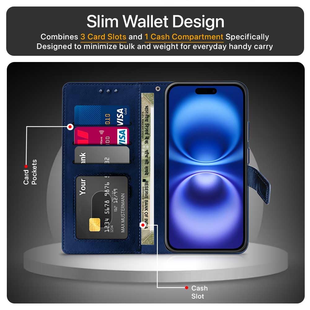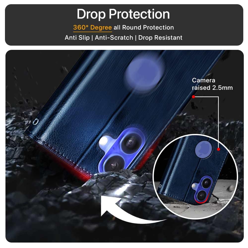 Shock Proof Flip Cover Back Case for Iphone 16 | Magnetic Wallet Leather Case with Stand