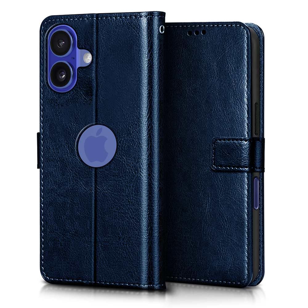 Buy premium shock proof flip cover back case for iphone 16. Leather finish with magnetic flip closure, wallet pockets and stand support. Durable protection against drops and scratches with a perfect fit for iphone 16.