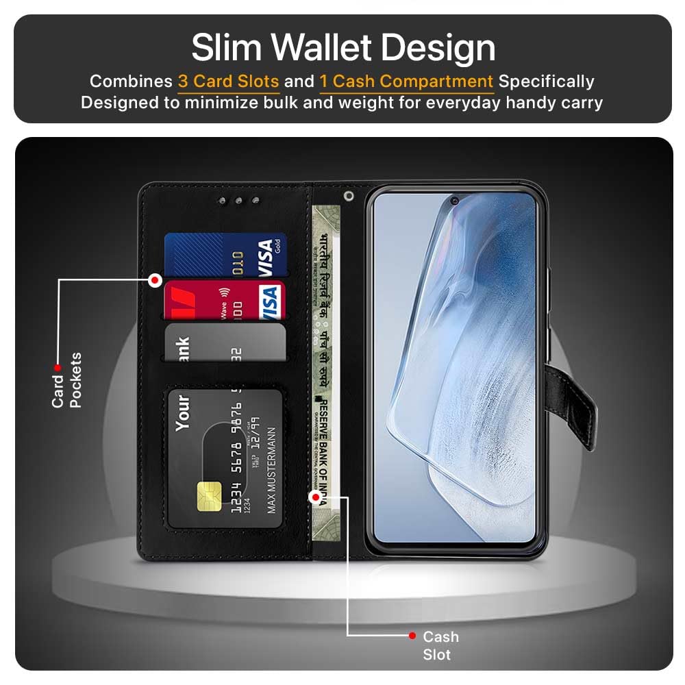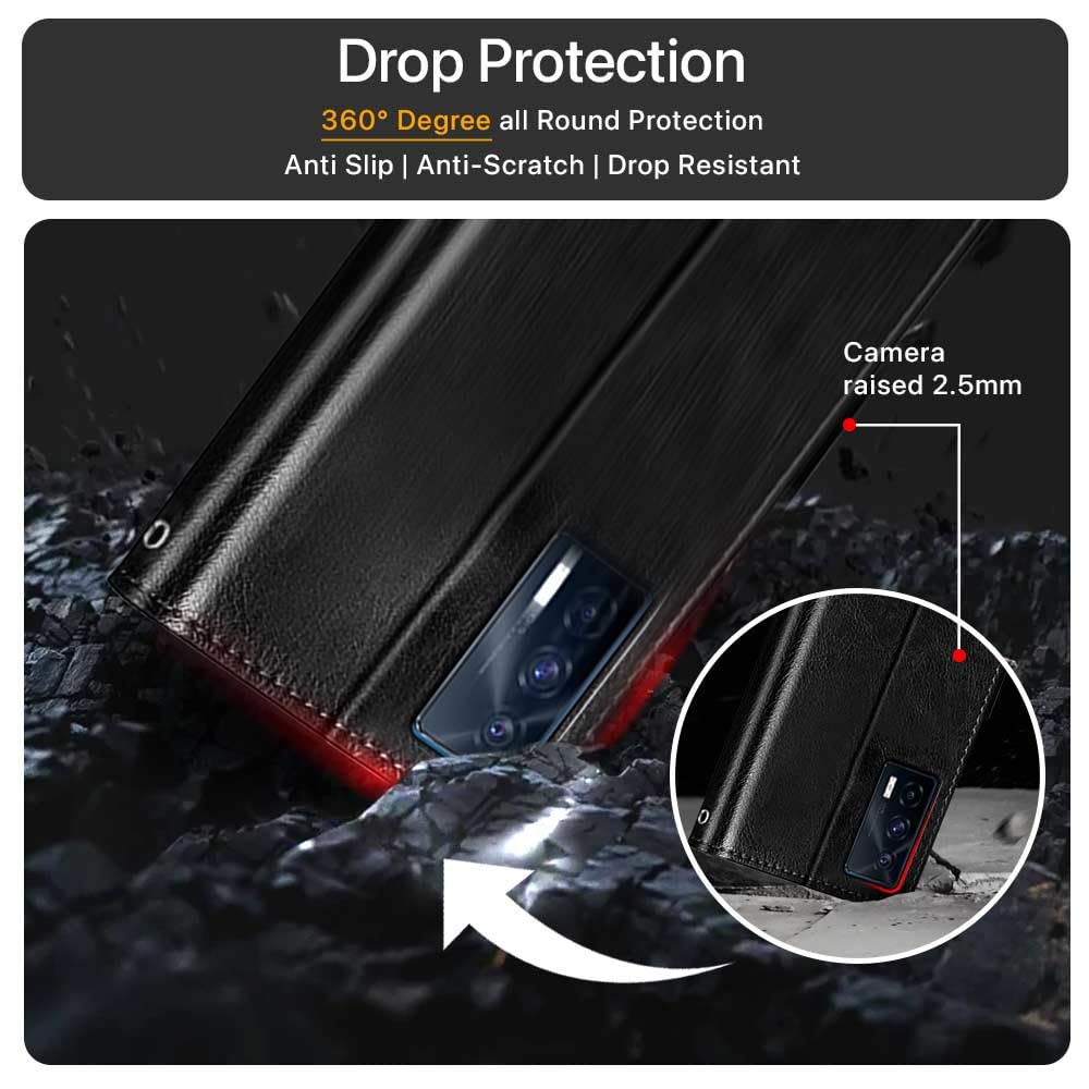 Shock Proof Flip Cover Back Case for Iqoo 7 | Magnetic Wallet Leather Case with Stand