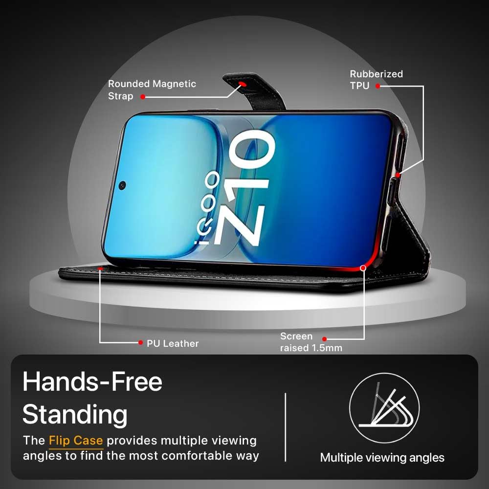 Shock Proof Flip Cover Back Case for Iqoo Z10 5G | Magnetic Wallet Leather Case with Stand