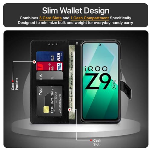 Shock Proof Flip Cover Back Case for Iqoo Z9 5G | Magnetic Wallet Leather Case with Stand