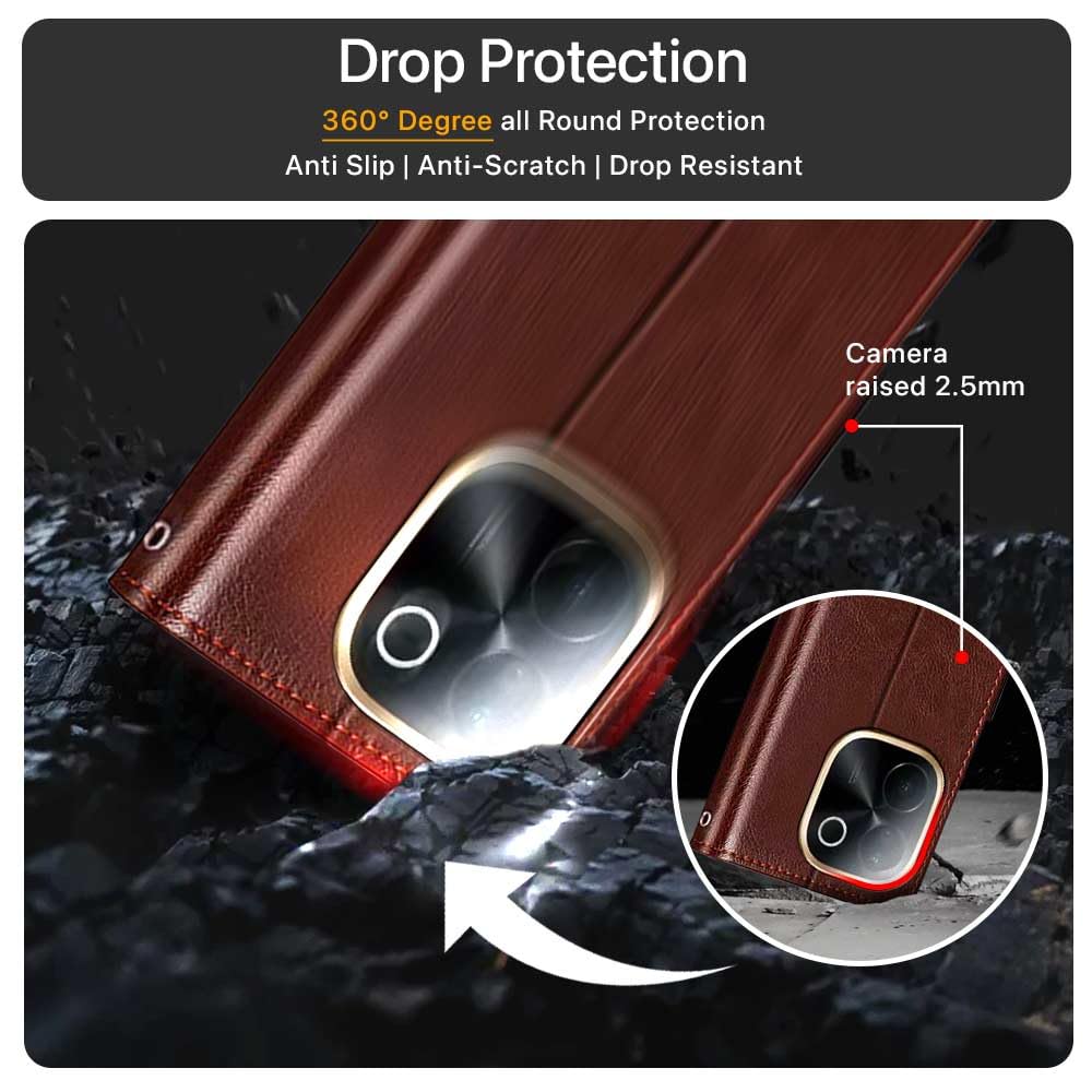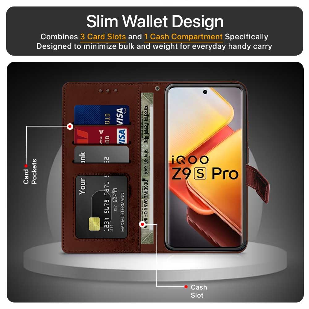 Shock Proof Flip Cover Back Case for Iqoo Z9S Pro 5G | Magnetic Wallet Leather Case with Stand