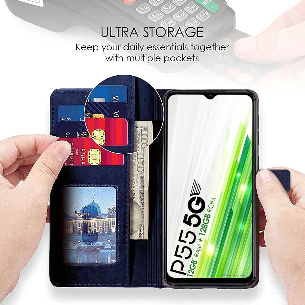 Shock Proof Flip Cover Back Case for Itel P55 5G | Magnetic Wallet Leather Case with Stand