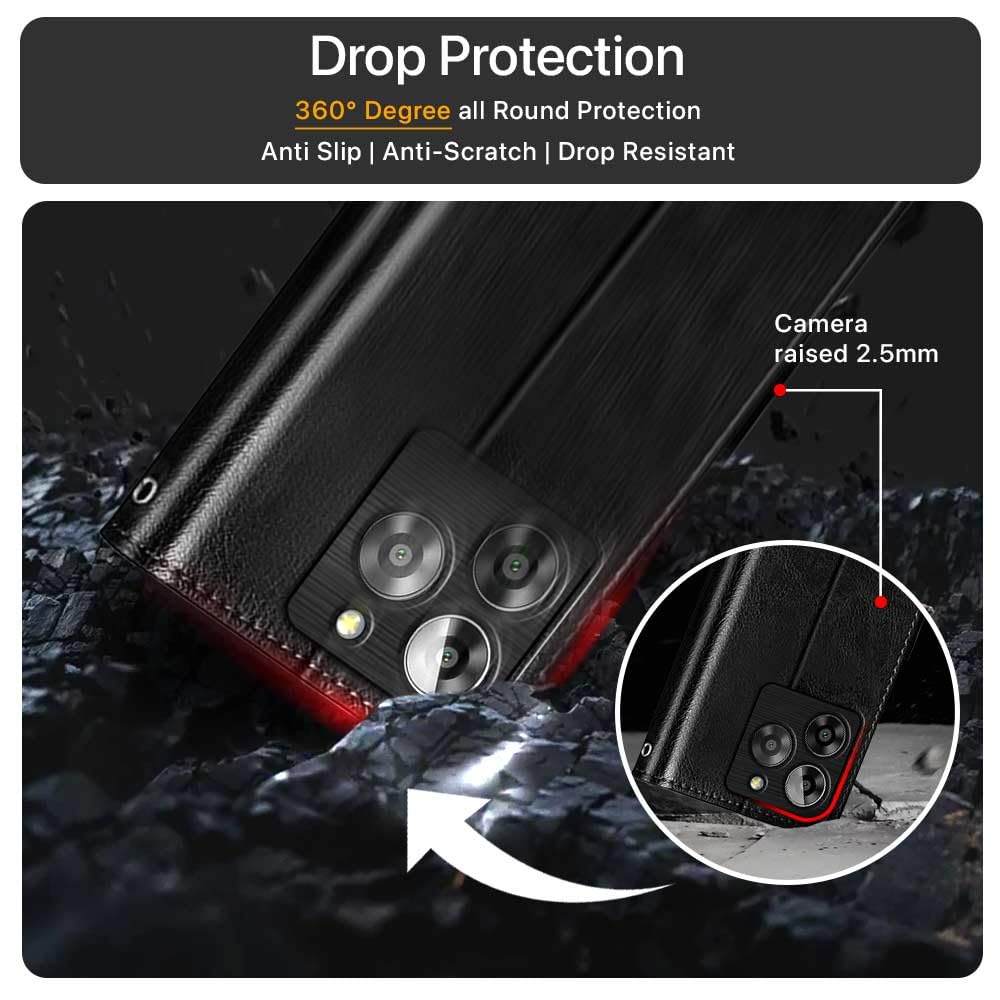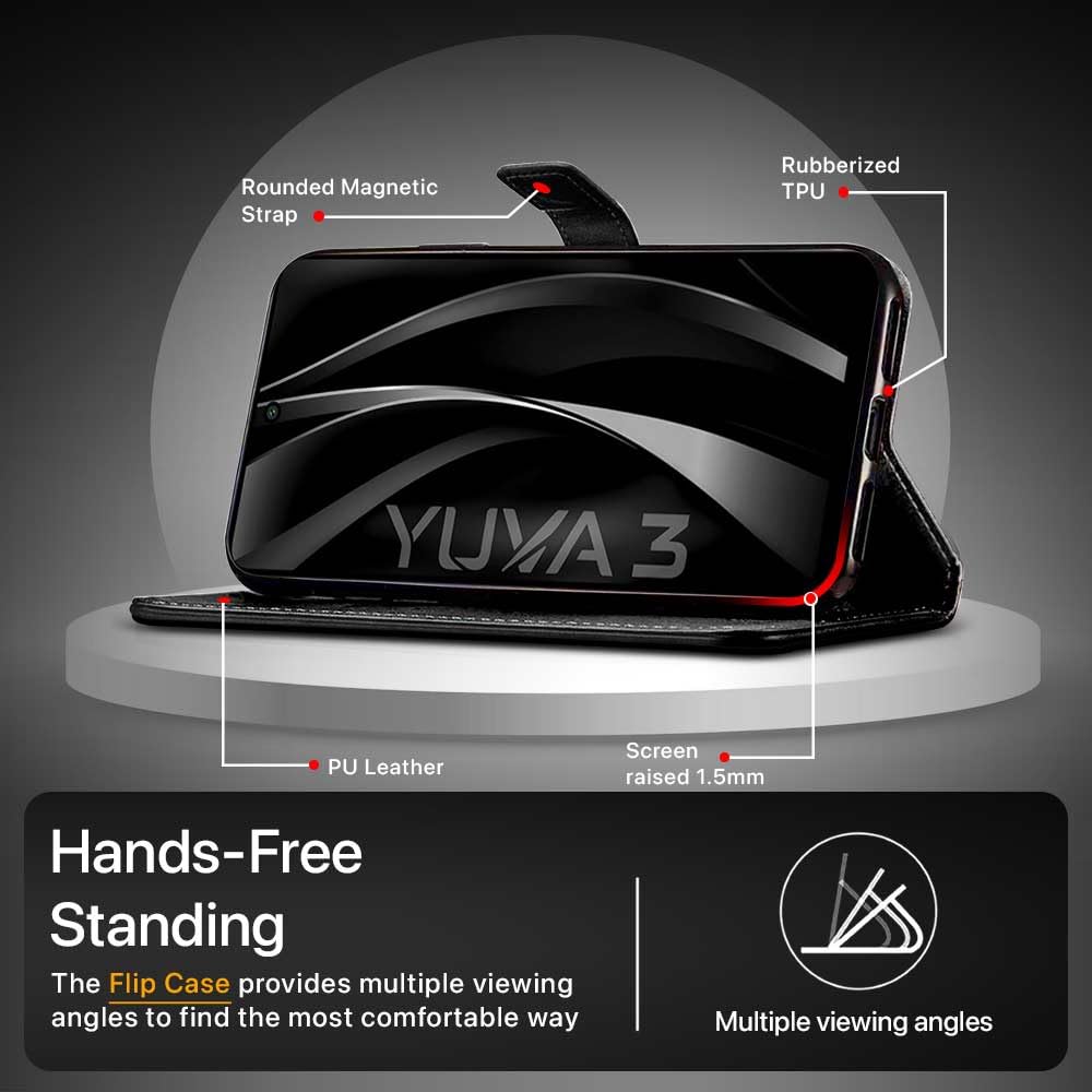 Shock Proof Flip Cover Back Case for Lava Yuva 3 5G | Magnetic Wallet Leather Case with Stand