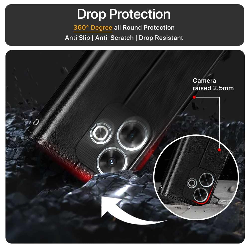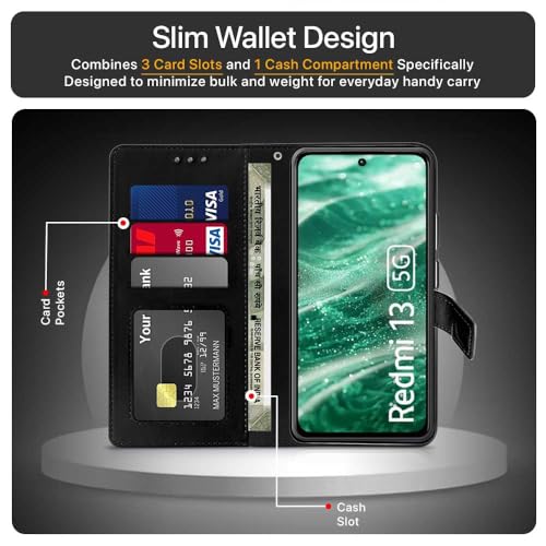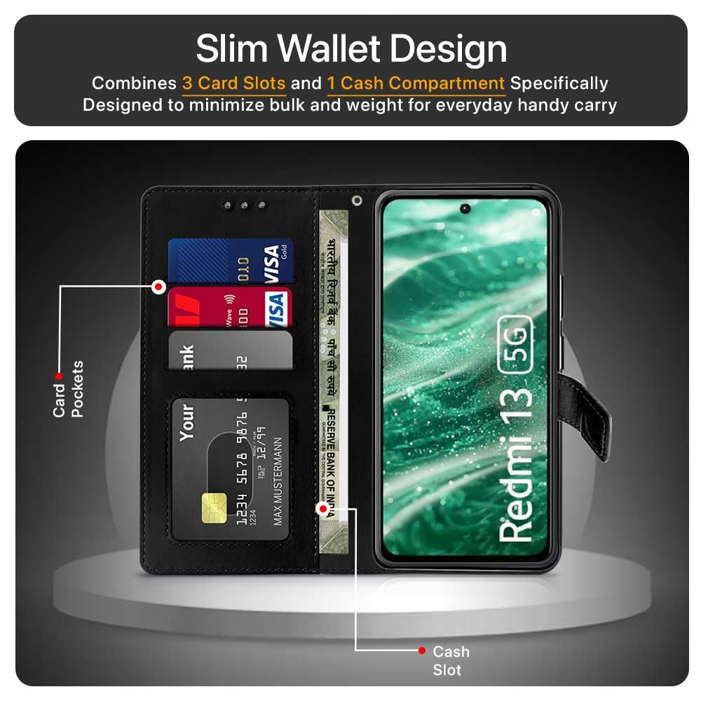 Shock Proof Flip Cover Back Case for Mi Redmi 13 5G | Magnetic Wallet Leather Case with Stand