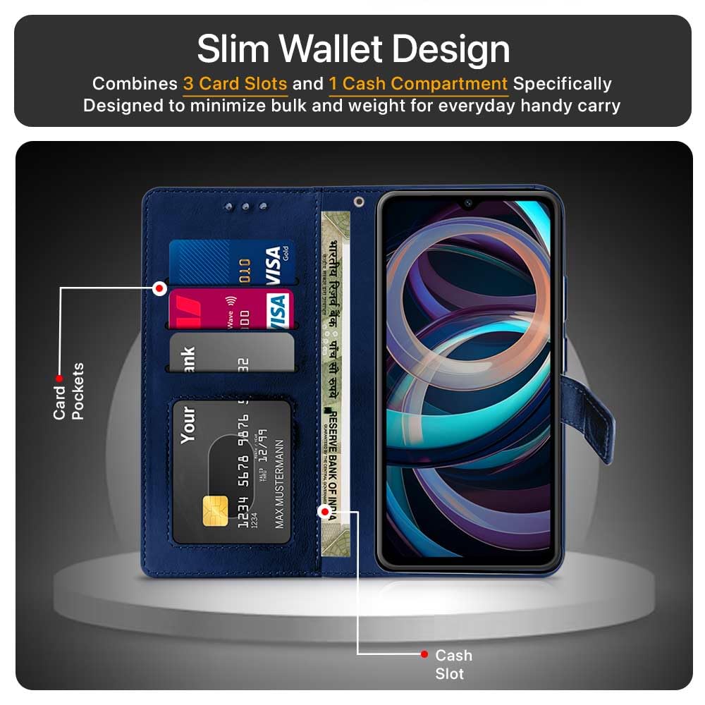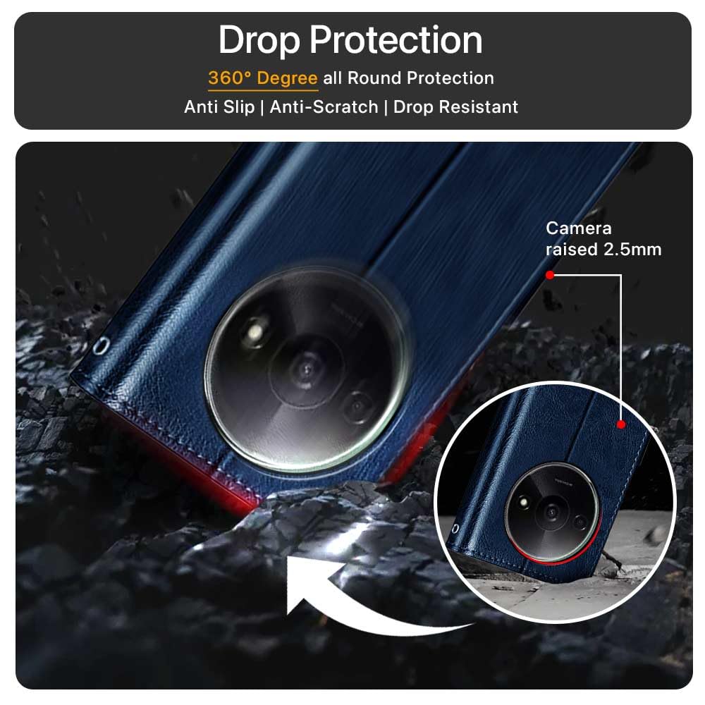 Shock Proof Flip Cover Back Case for Mi Redmi A3 | Magnetic Wallet Leather Case with Stand