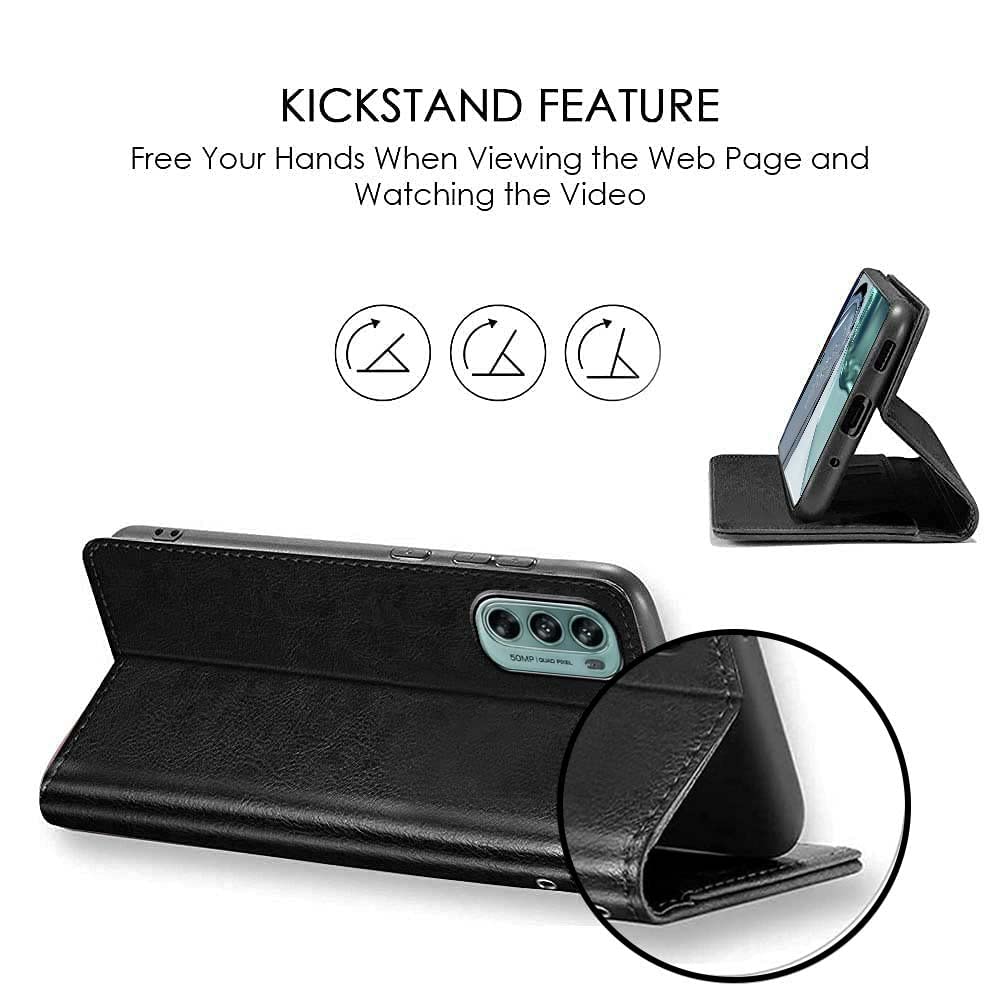 Shock Proof Flip Cover Back Case for Moto Motorola G62 | Magnetic Wallet Leather Case with Stand