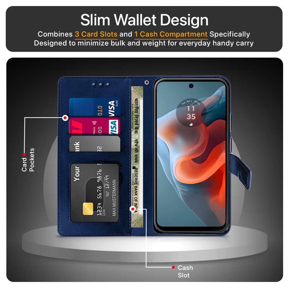 Buy premium shock proof flip cover back case for motorola moto g34 5g. Leather finish with magnetic flip closure, wallet pockets and stand support. Durable protection against drops and scratches with a perfect fit for motorola moto g34 5g.