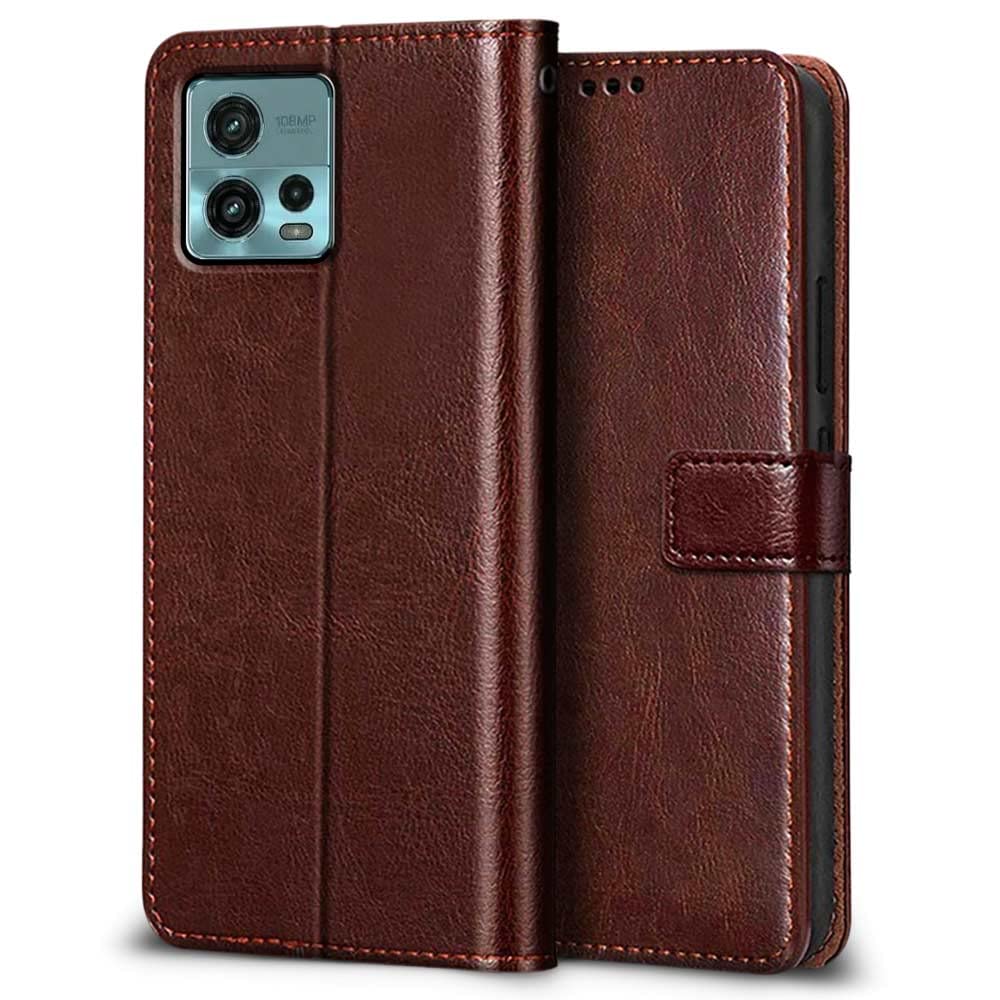Buy premium shock proof flip cover back case for motorola moto g72. Leather finish with magnetic flip closure, wallet pockets and stand support. Durable protection against drops and scratches with a perfect fit for motorola moto g72.