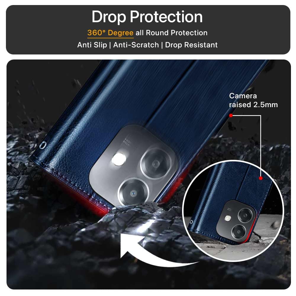 Buy premium shock proof flip cover back case for oppo a3x 5g. Leather finish with magnetic flip closure, wallet pockets and stand support. Durable protection against drops and scratches with a perfect fit for oppo a3x 5g.