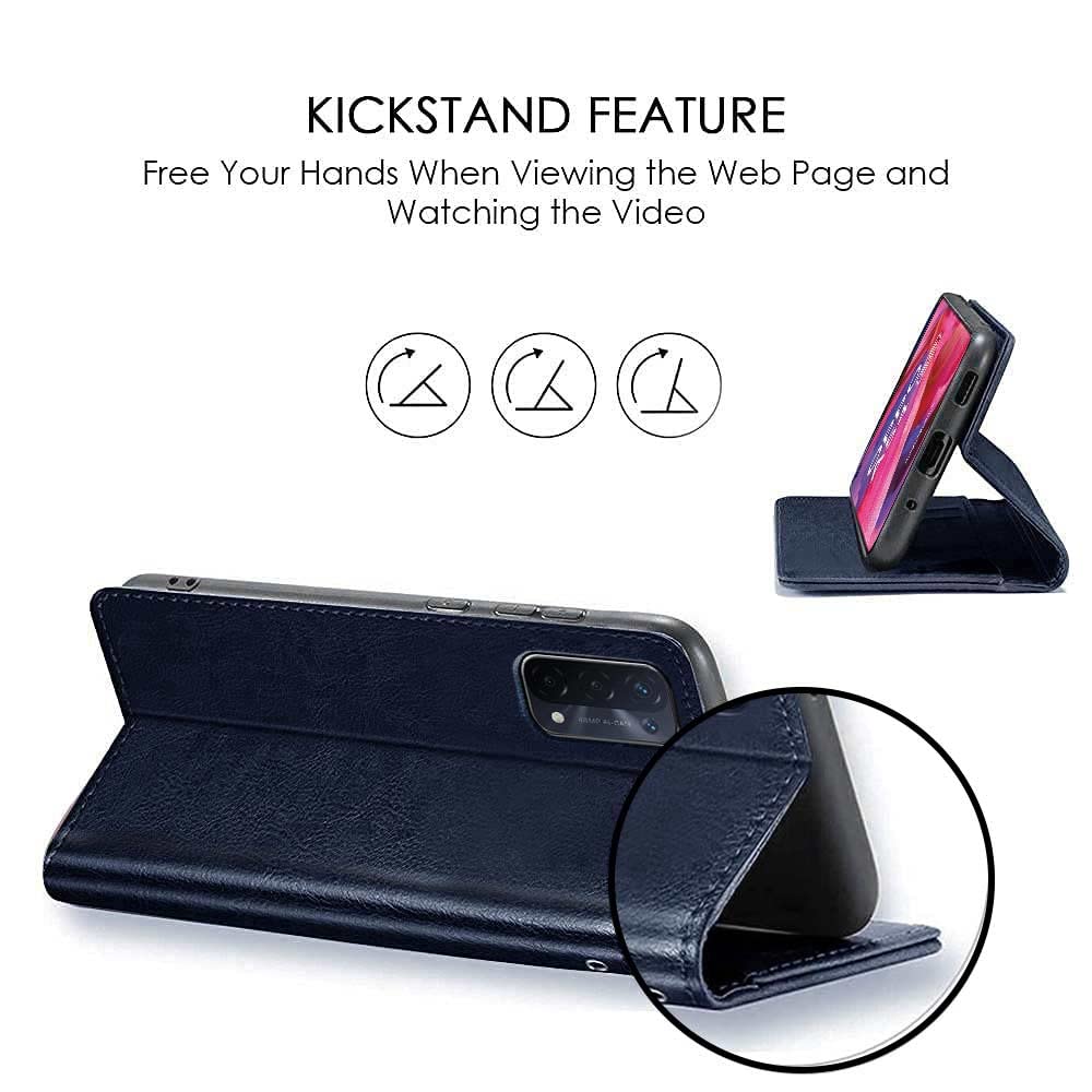 Shock Proof Flip Cover Back Case for Oppo A54 5G | Magnetic Wallet Leather Case with Stand