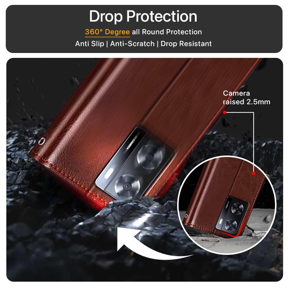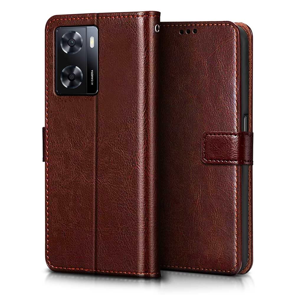 Buy premium shock proof flip cover back case for oppo a57. Leather finish with magnetic flip closure, wallet pockets and stand support. Durable protection against drops and scratches with a perfect fit for oppo a57.