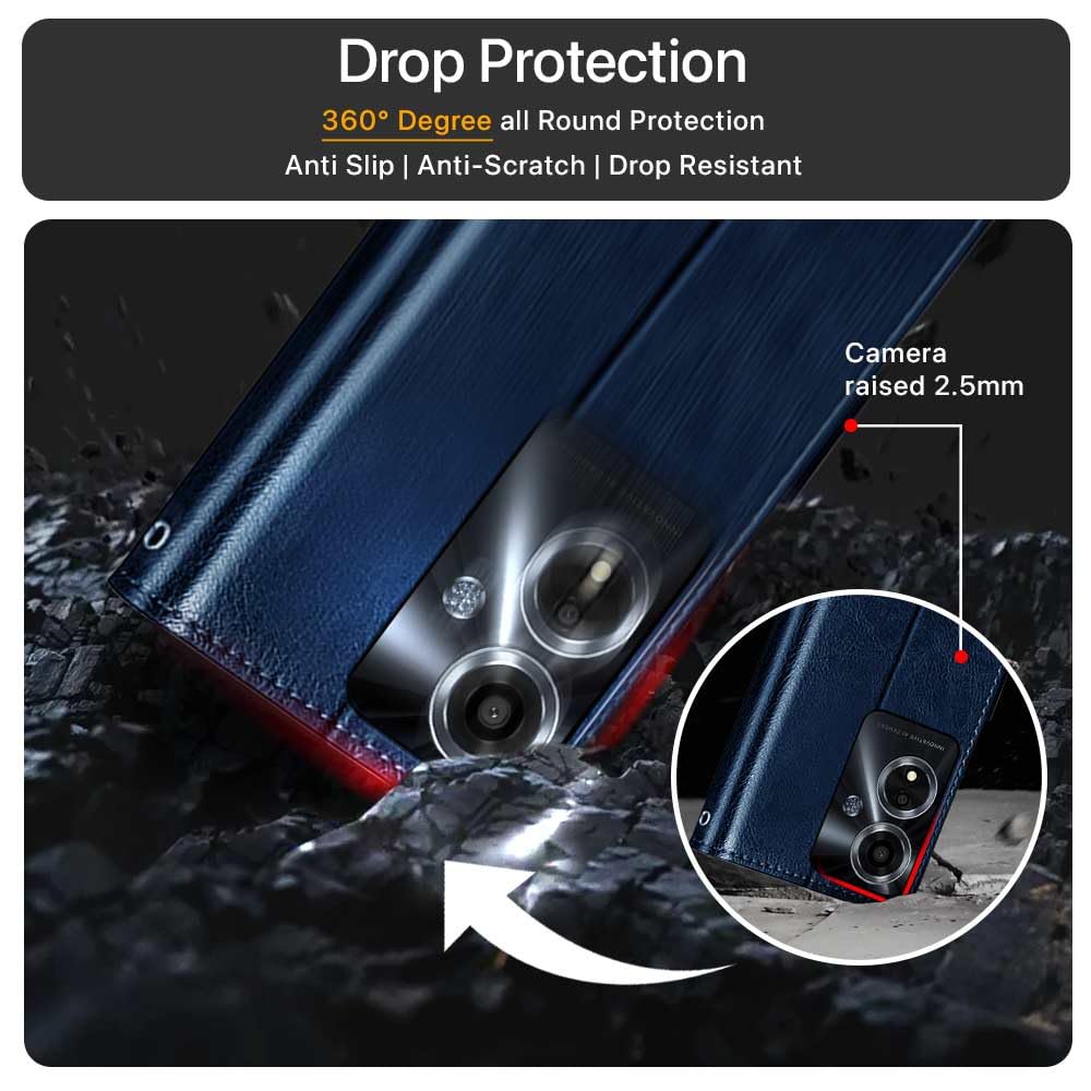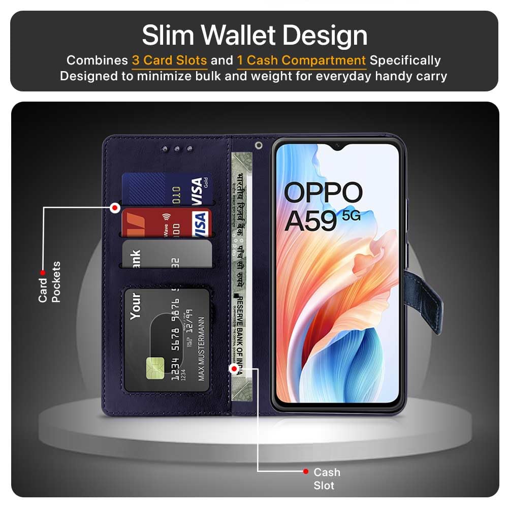 Shock Proof Flip Cover Back Case for Oppo A59 5G | Magnetic Wallet Leather Case with Stand