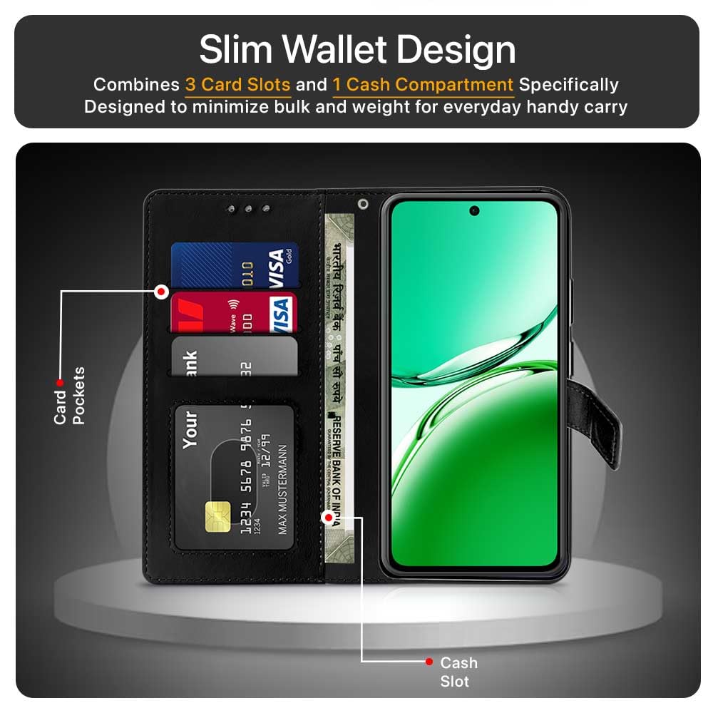 Shock Proof Flip Cover Back Case for Oppo F27 5G | Magnetic Wallet Leather Case with Stand